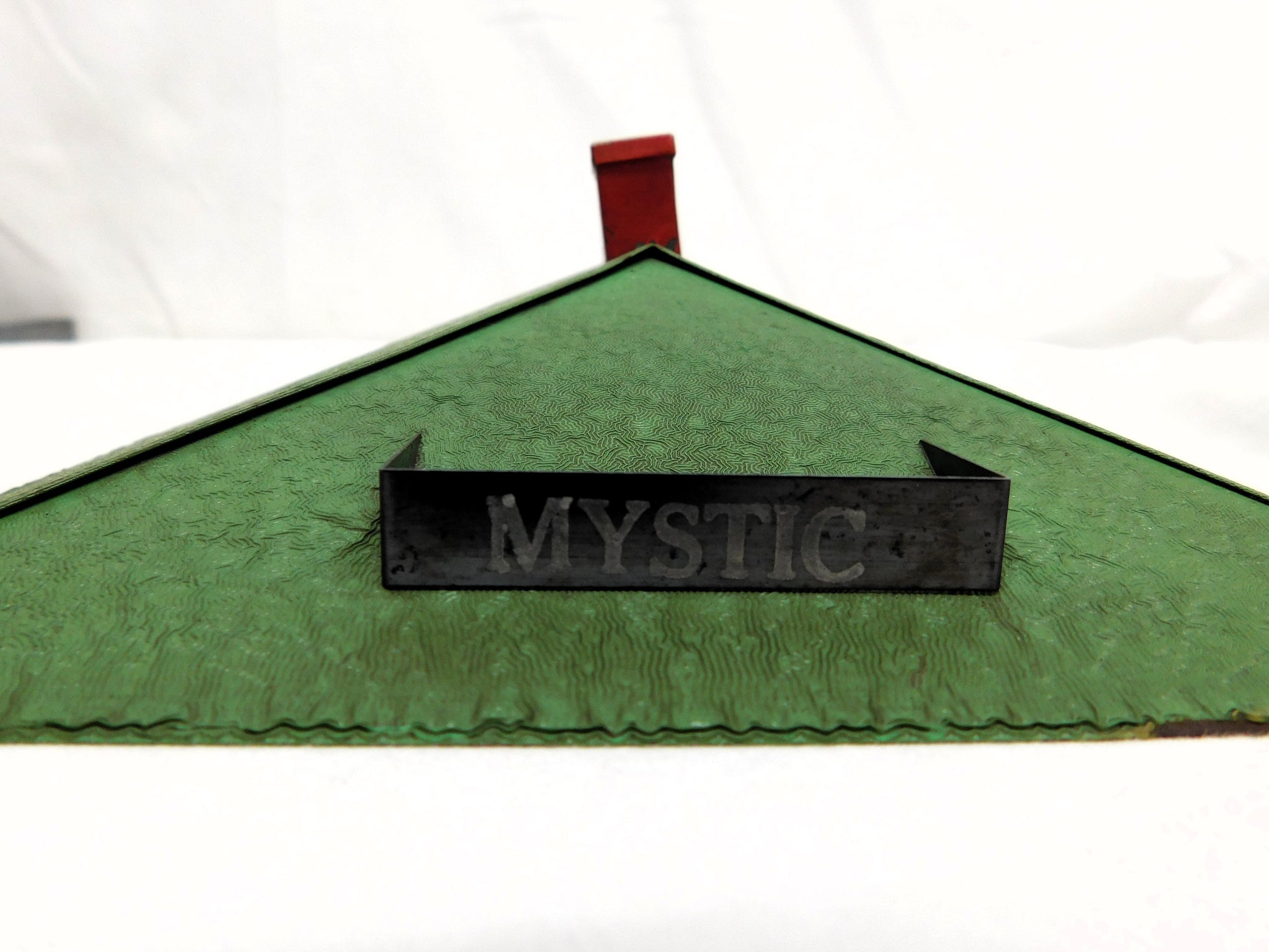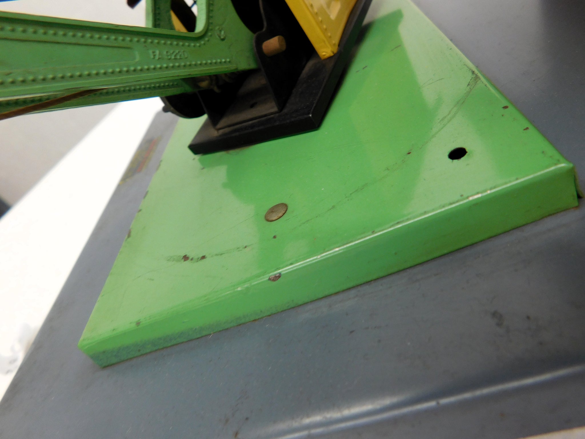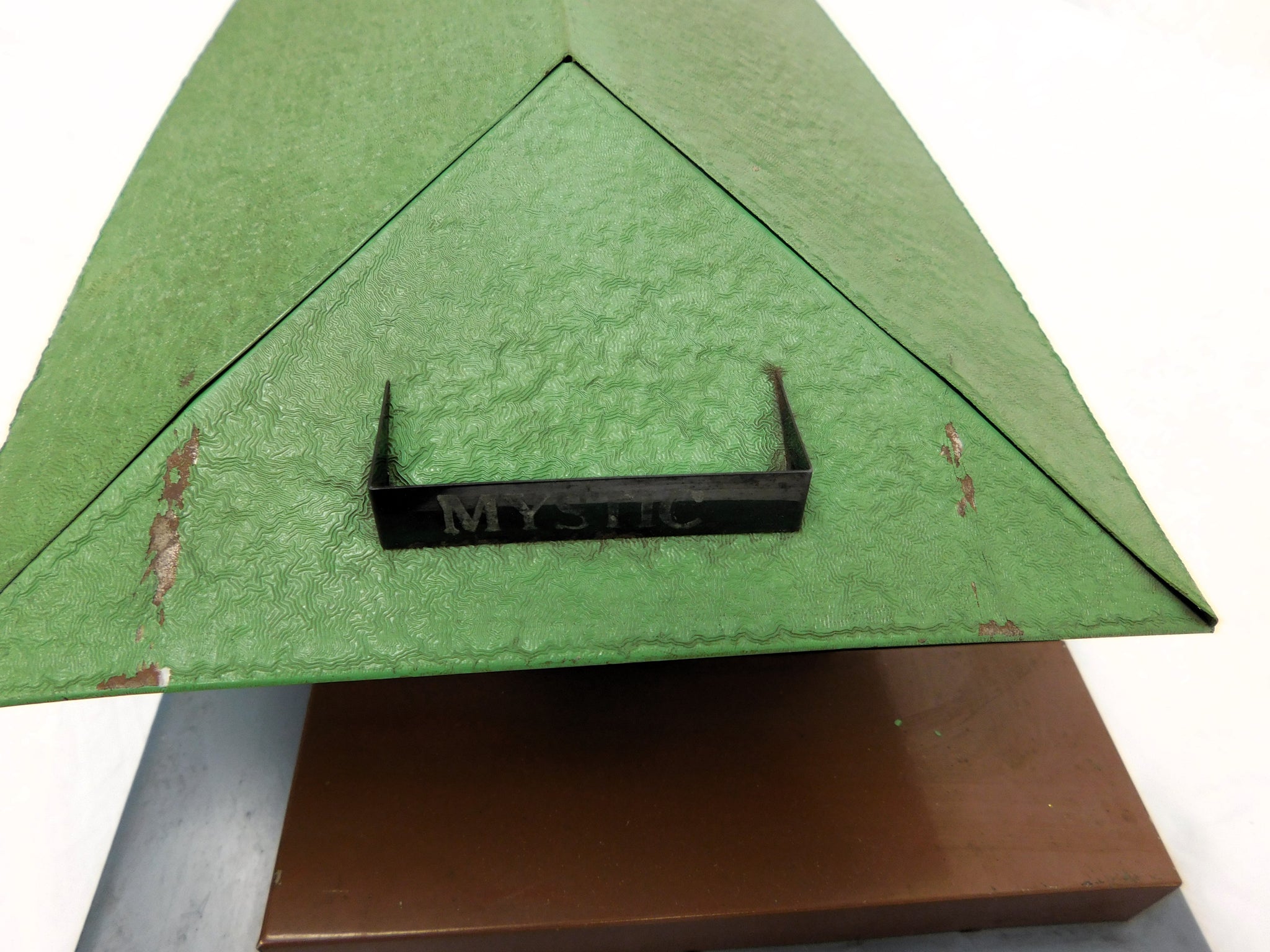 CONDITION: C-6+. Shows oxidation, signs of use, playwear and some surface rust. Roof is a little dirty. May have touch base paint. Crane looks good and has crank, etc. Not sure if brown paint is original, touched up or repainted. "Mystic" printing is a little faded from handling. Looks good.