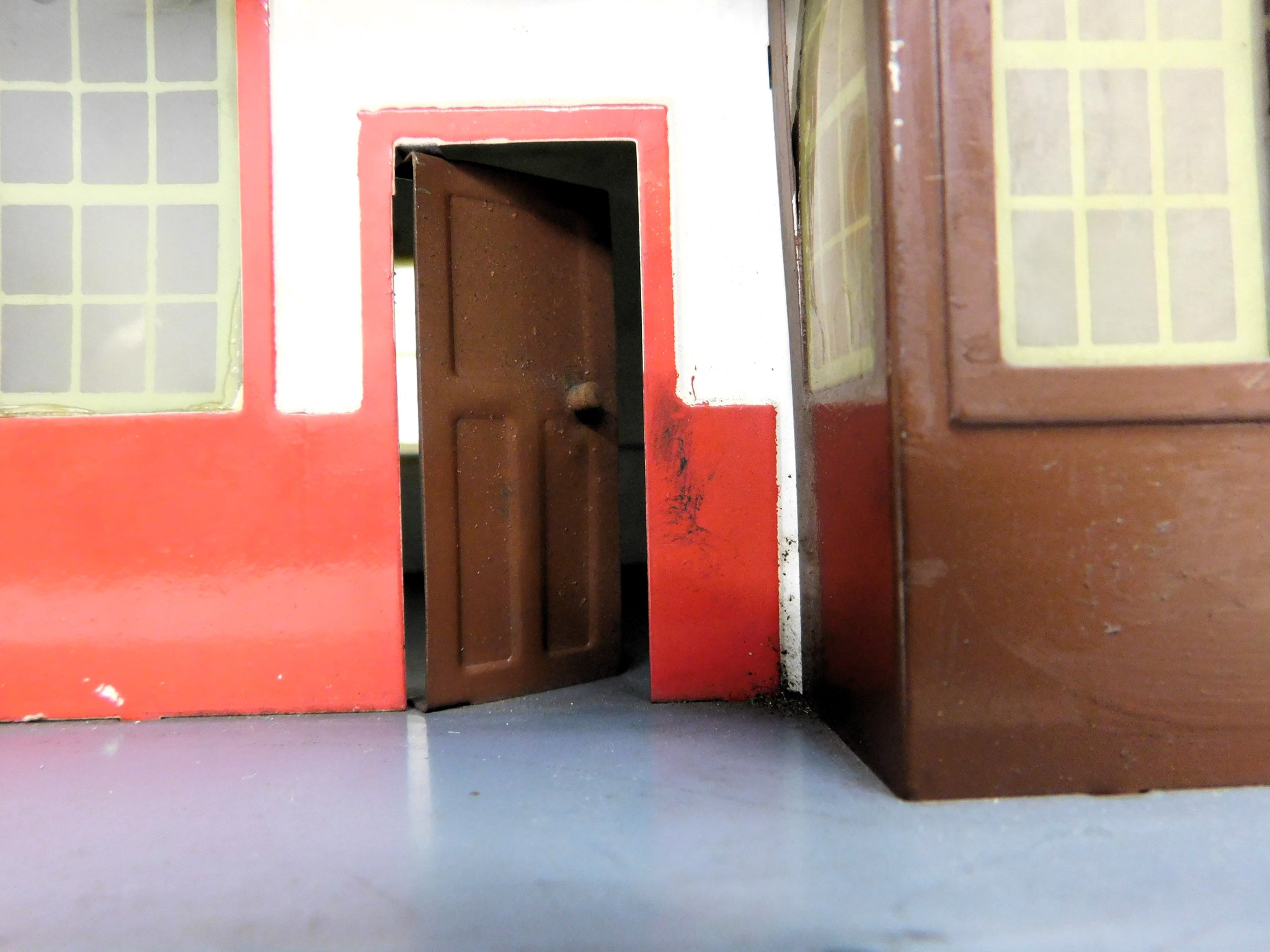 Flyer made this item prewar and postwar and with different variations. THIS one has a brown painted door and brown painted platform. Please look at the pictures closely.