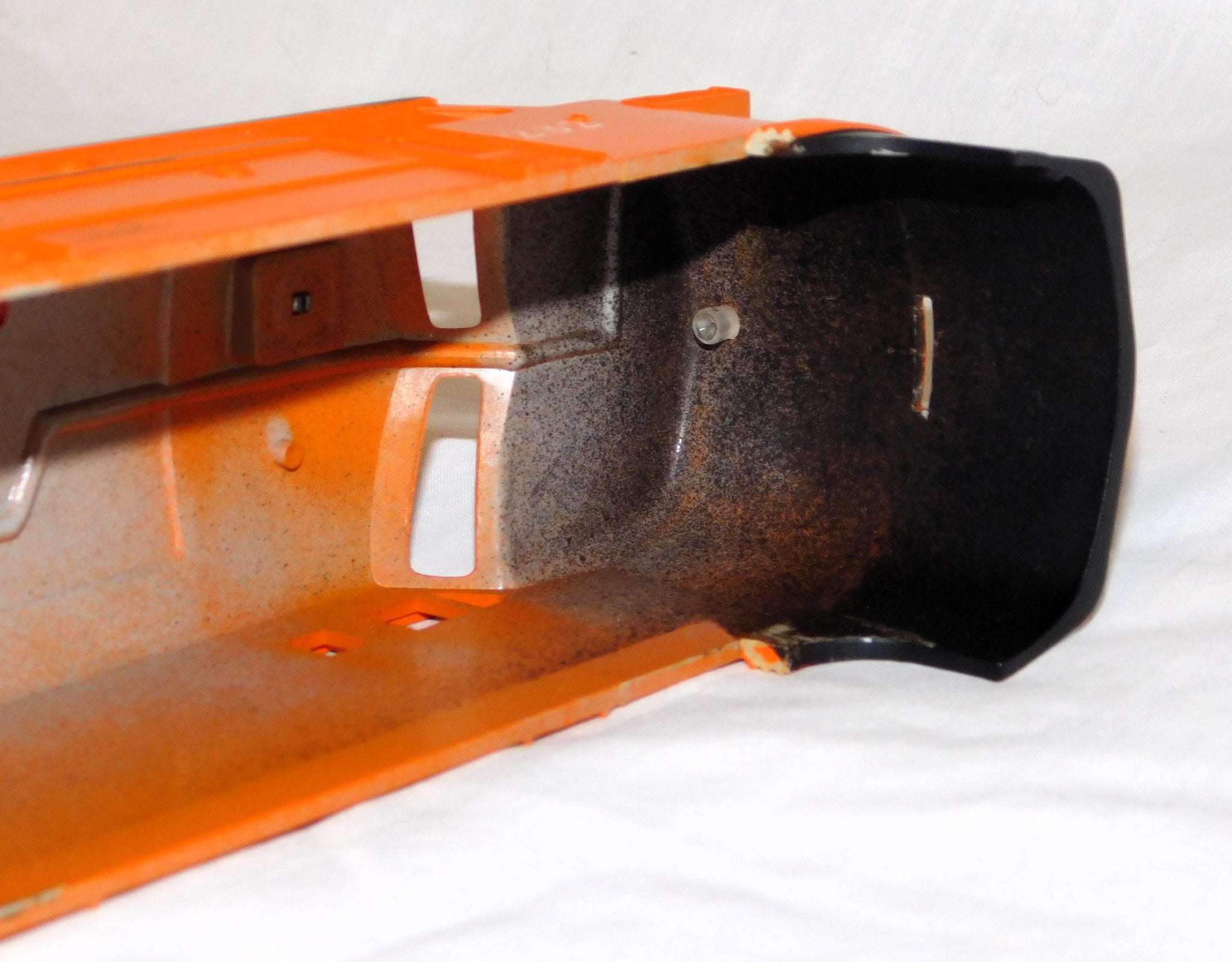 This unit has a black painted pilot (or apron). It is so well done that it is hard to tell if it was done at the factory for some reason or by an individual. The lines are straight, and the paint is solid. We have provided pictures of the inside of the shell for you as well so that you can see everything and decide for yourself. DO not forget to go all the way to the bottom of the liusting for more pictures.