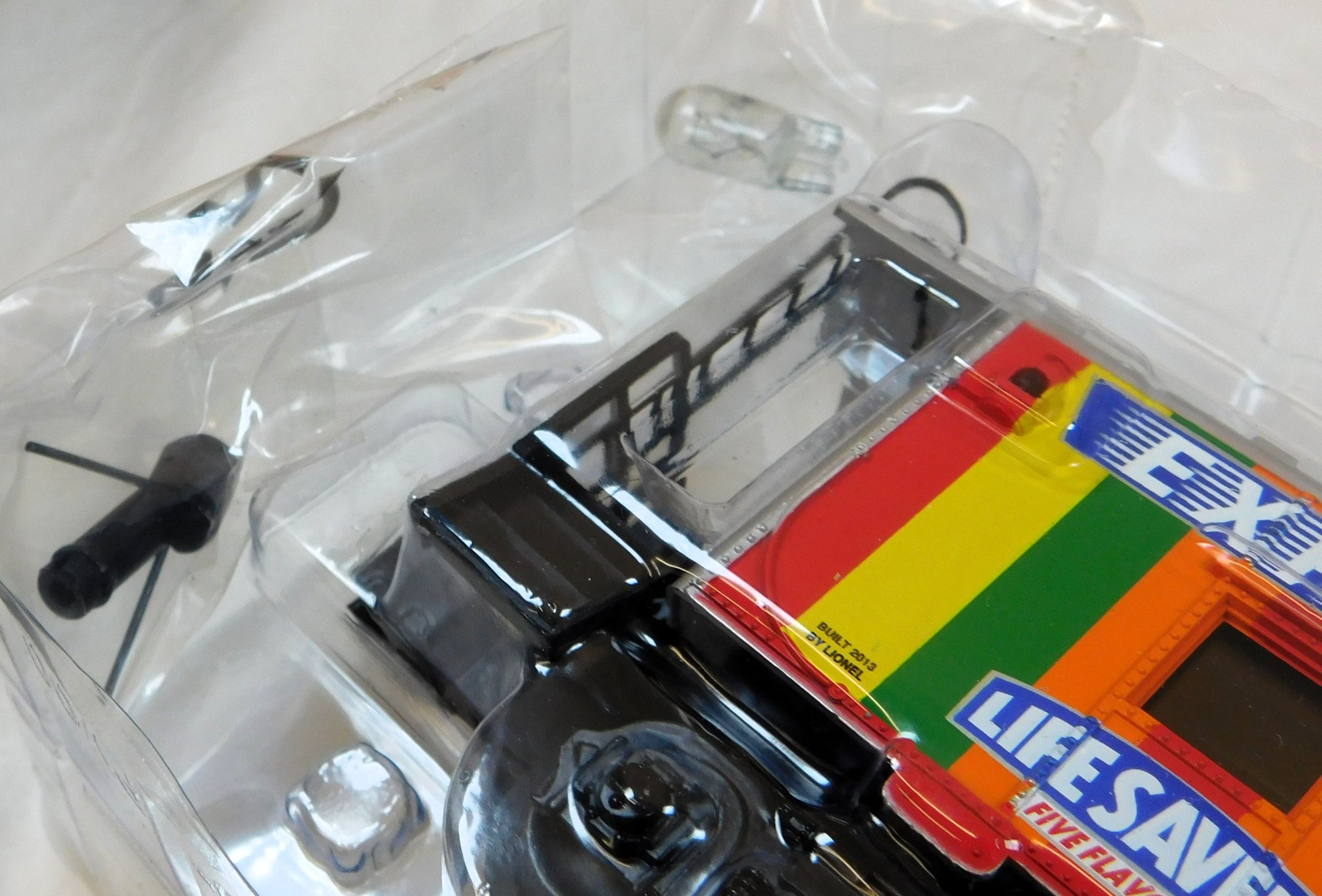 There were seven cars made total I believe. This was the sixth in the series released around 2013. This car came with Lifesavers decals which were included in case you wanted to make one of your existing locomotives match the set of cars! Yes, the decals are here.