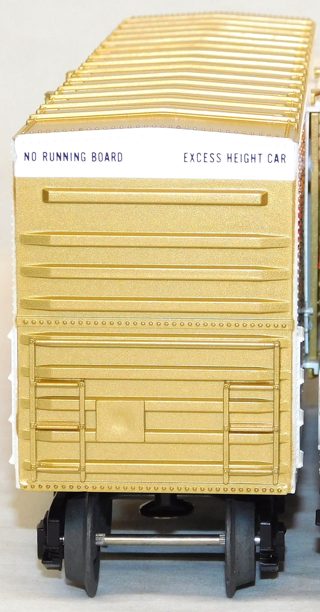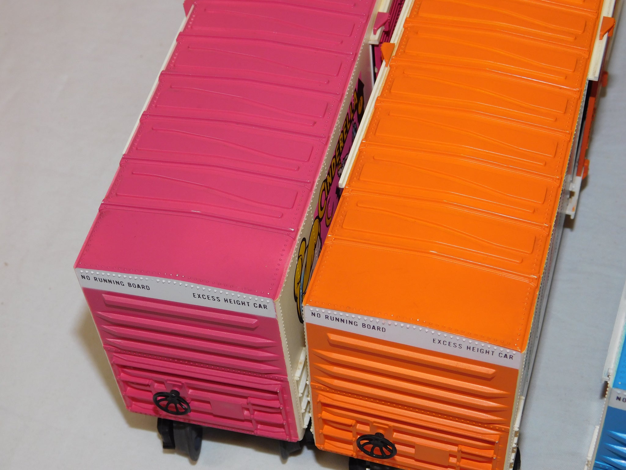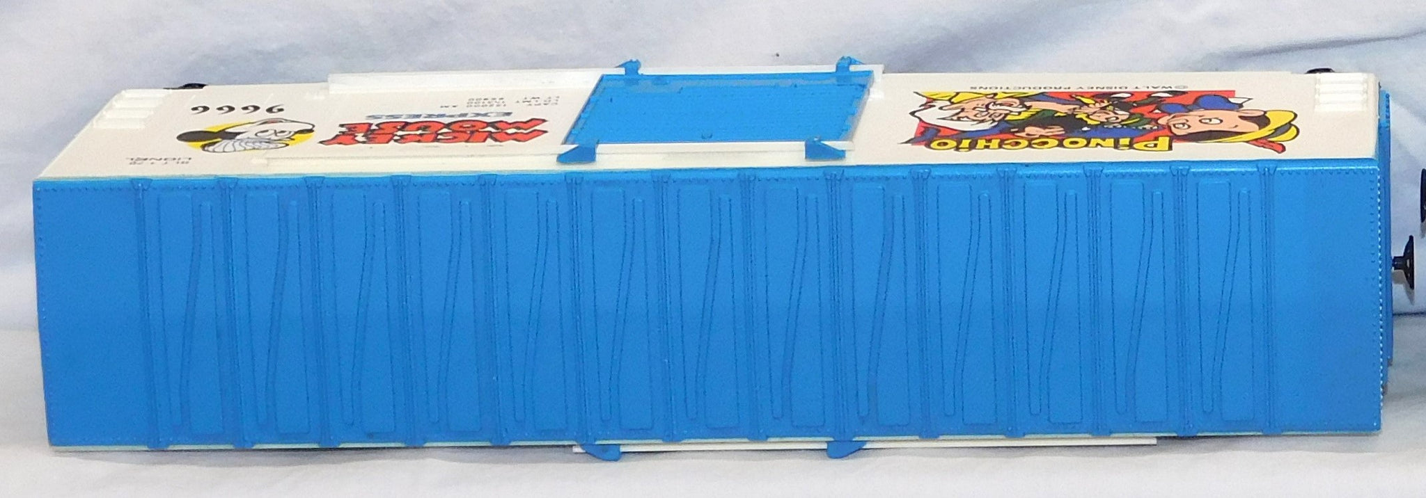 The 9666 Pinnochio car has an interesting FACTORY MISPRINT on one end--they accidentally stamped the data line from the roof's edge on the side at the bottom in addition to the proper location!