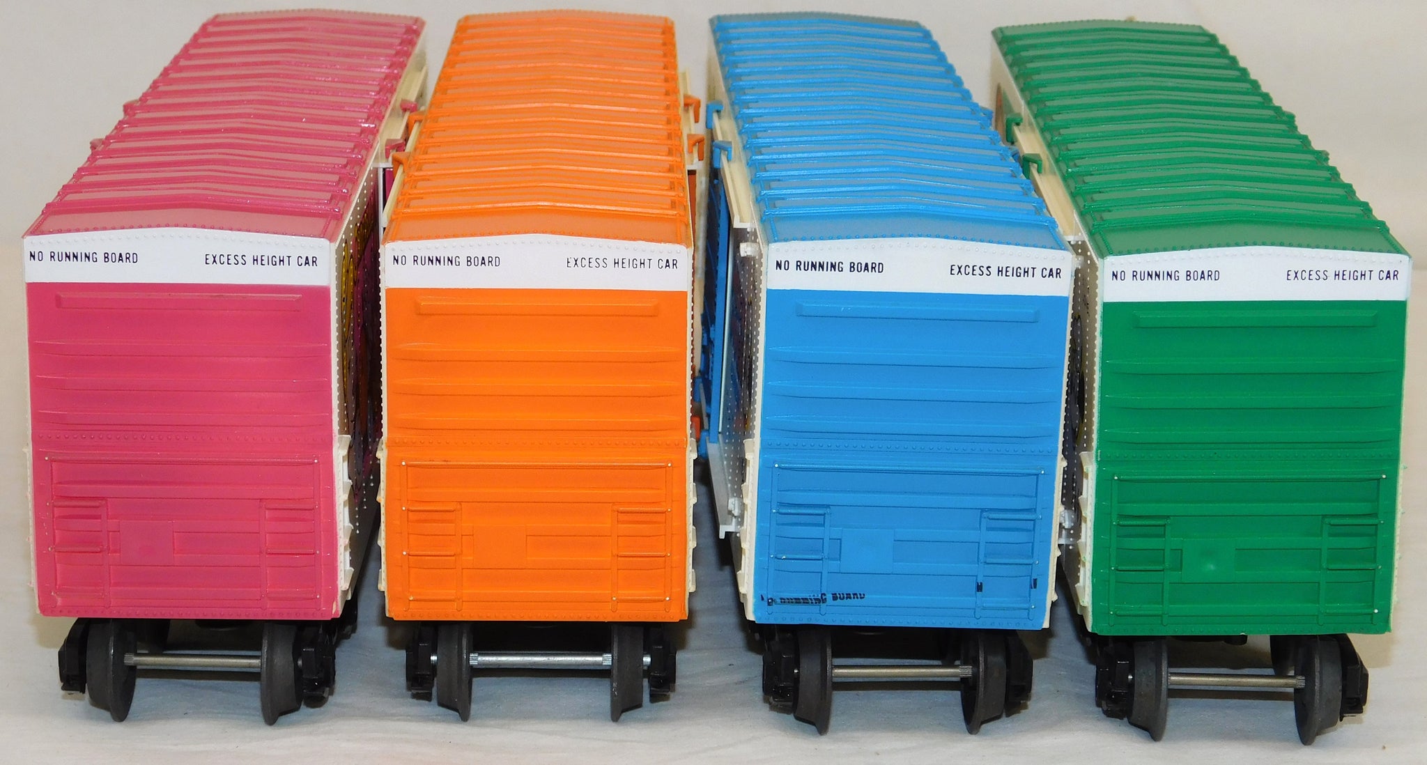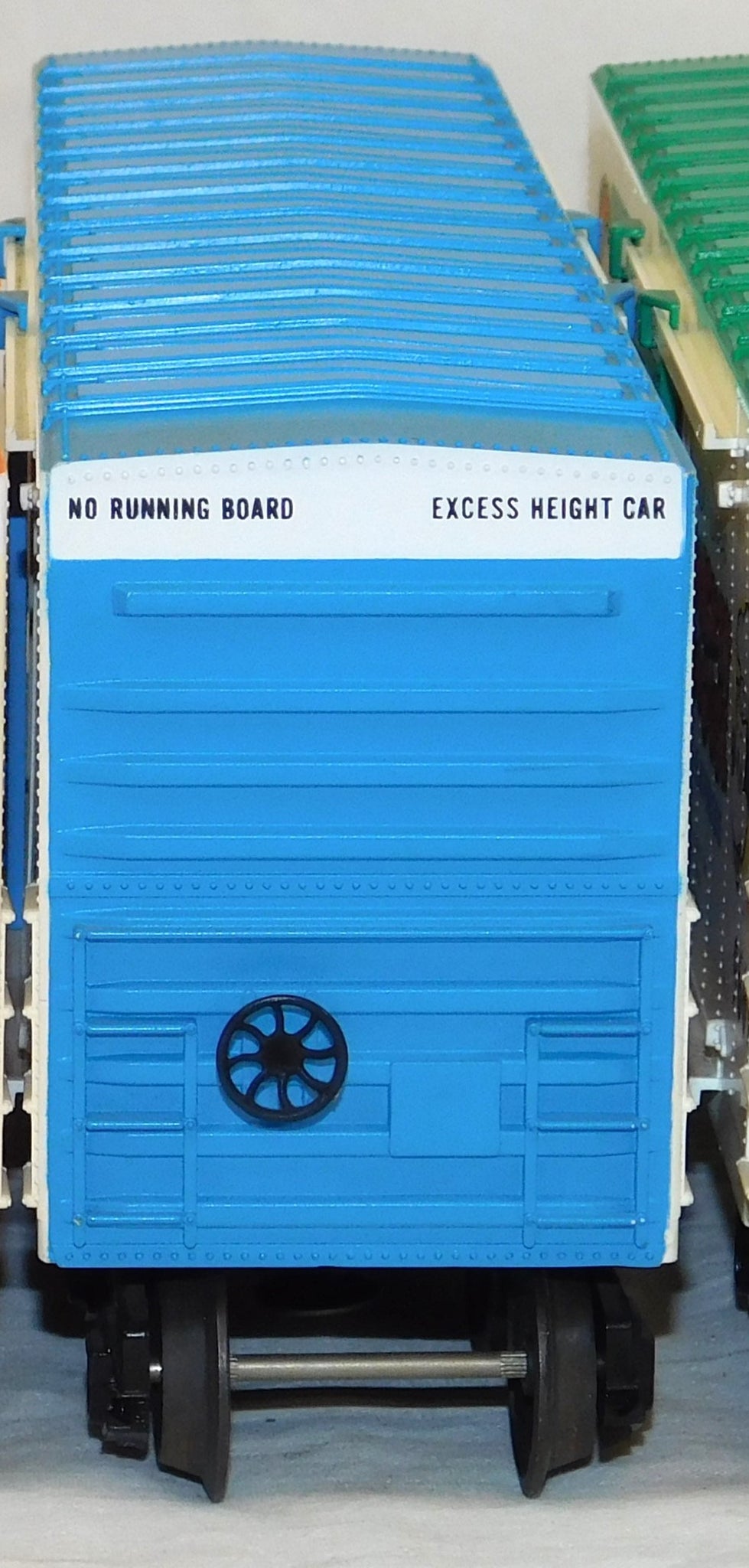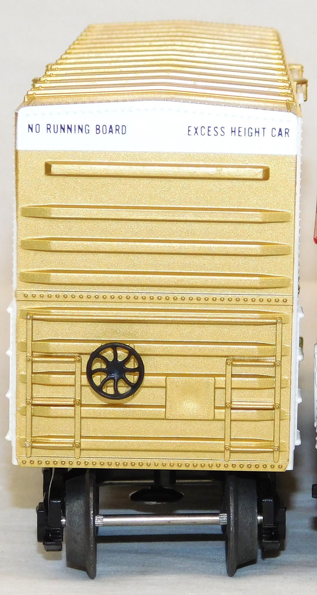 The 9666 Pinnochio car has an interesting FACTORY MISPRINT on one end--they accidentally stamped the data line from the roof's edge on the side at the bottom in addition to the proper location!