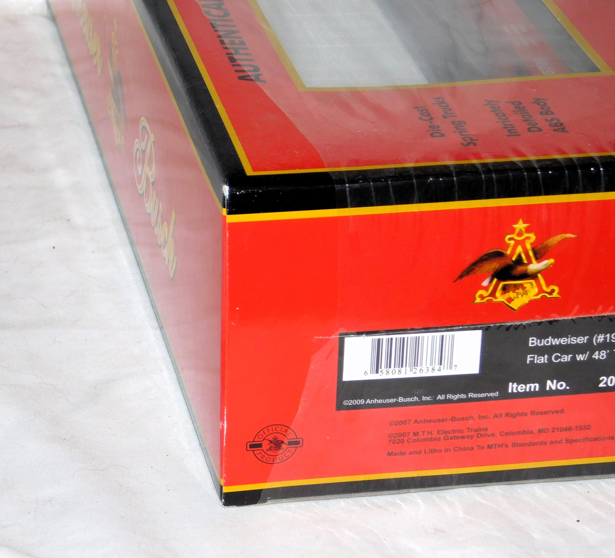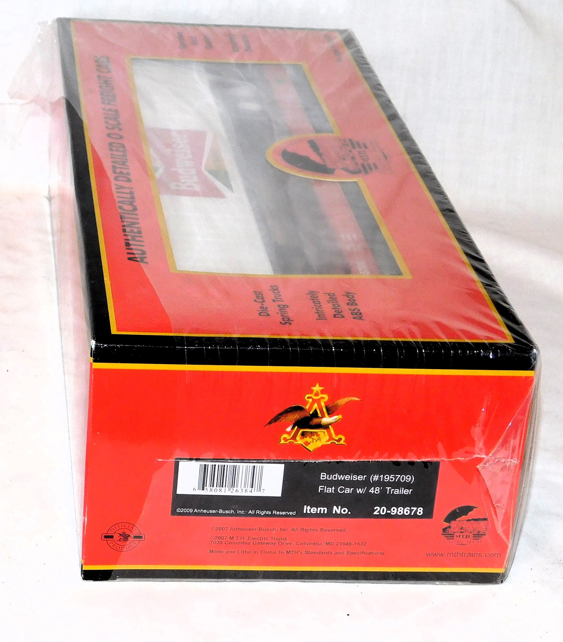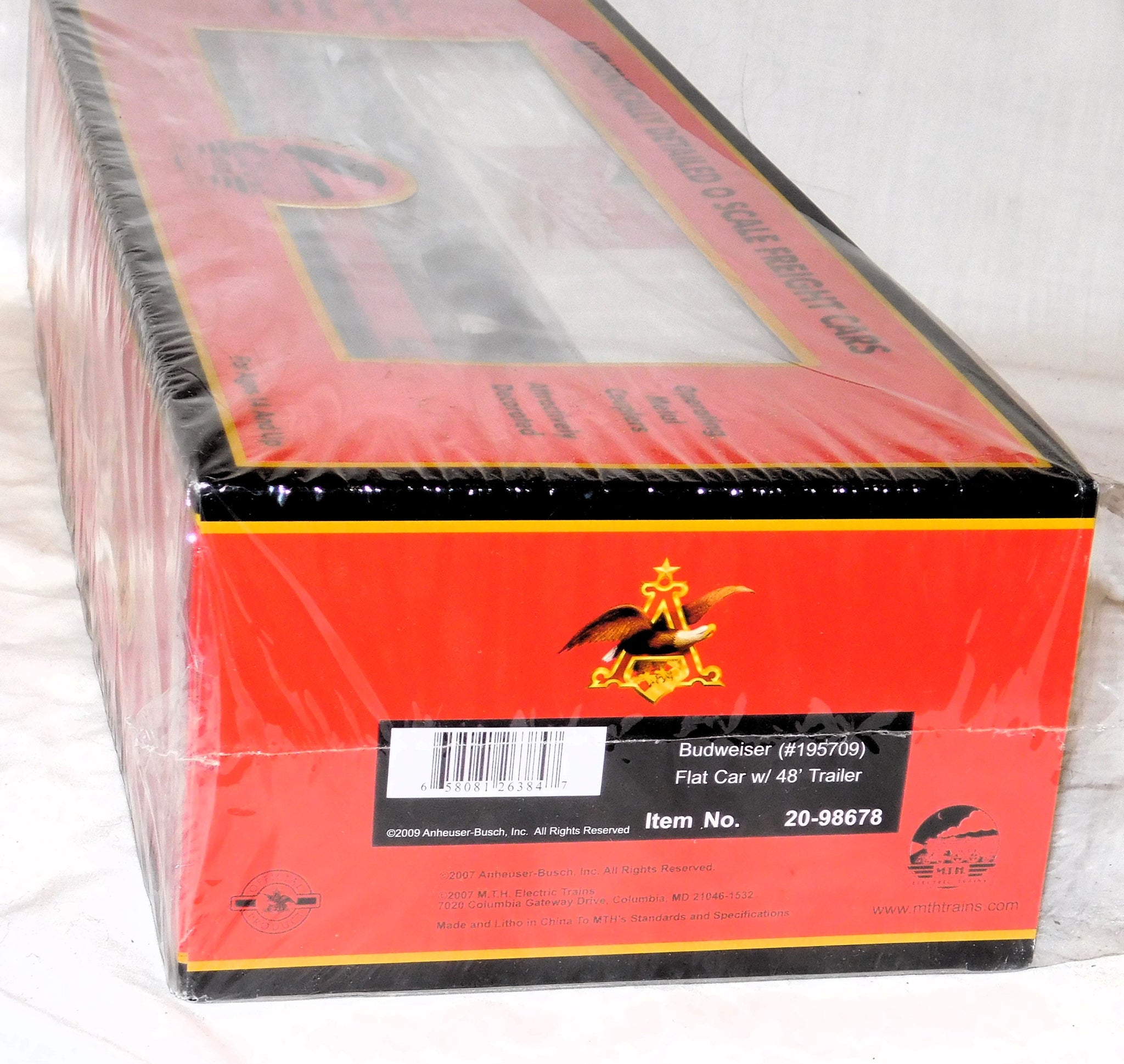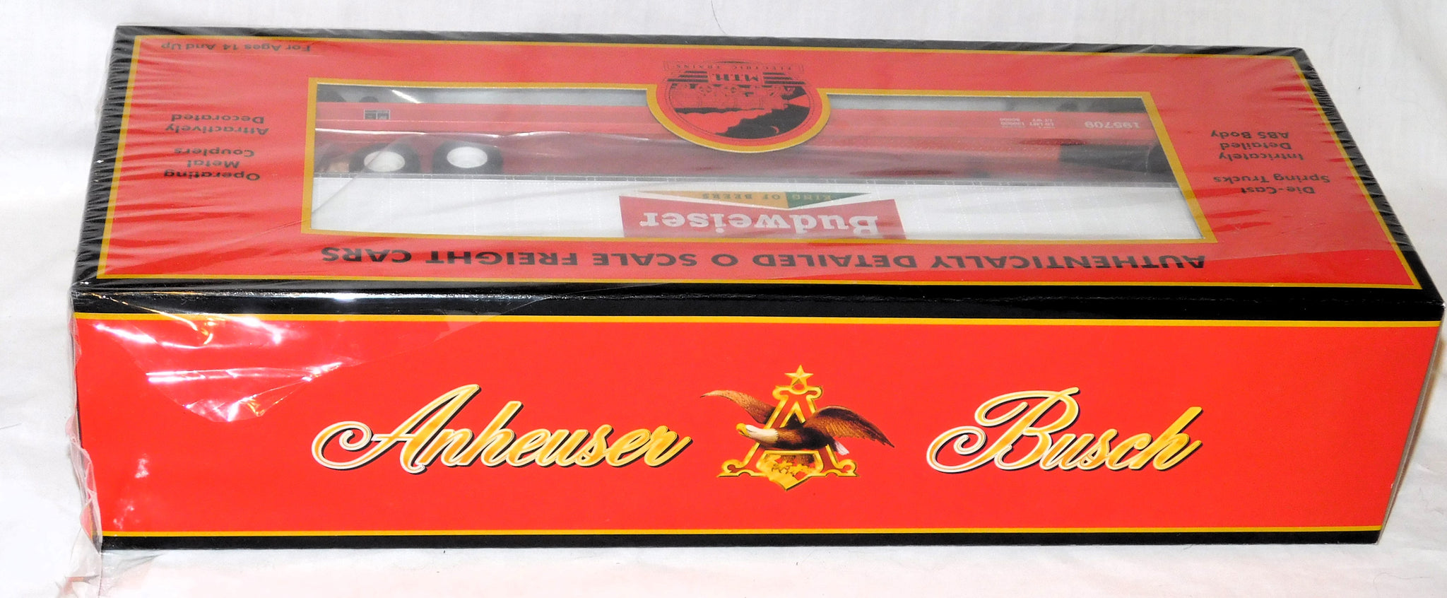 Here is an MTH Trailer Train flat car with a 48' trailer decorated for Anheuser Busch Budweiser. This is a really good looking car in the full 1/48 scale O that you associate with MTH Premier, Atlas O and Lionel Standard O.