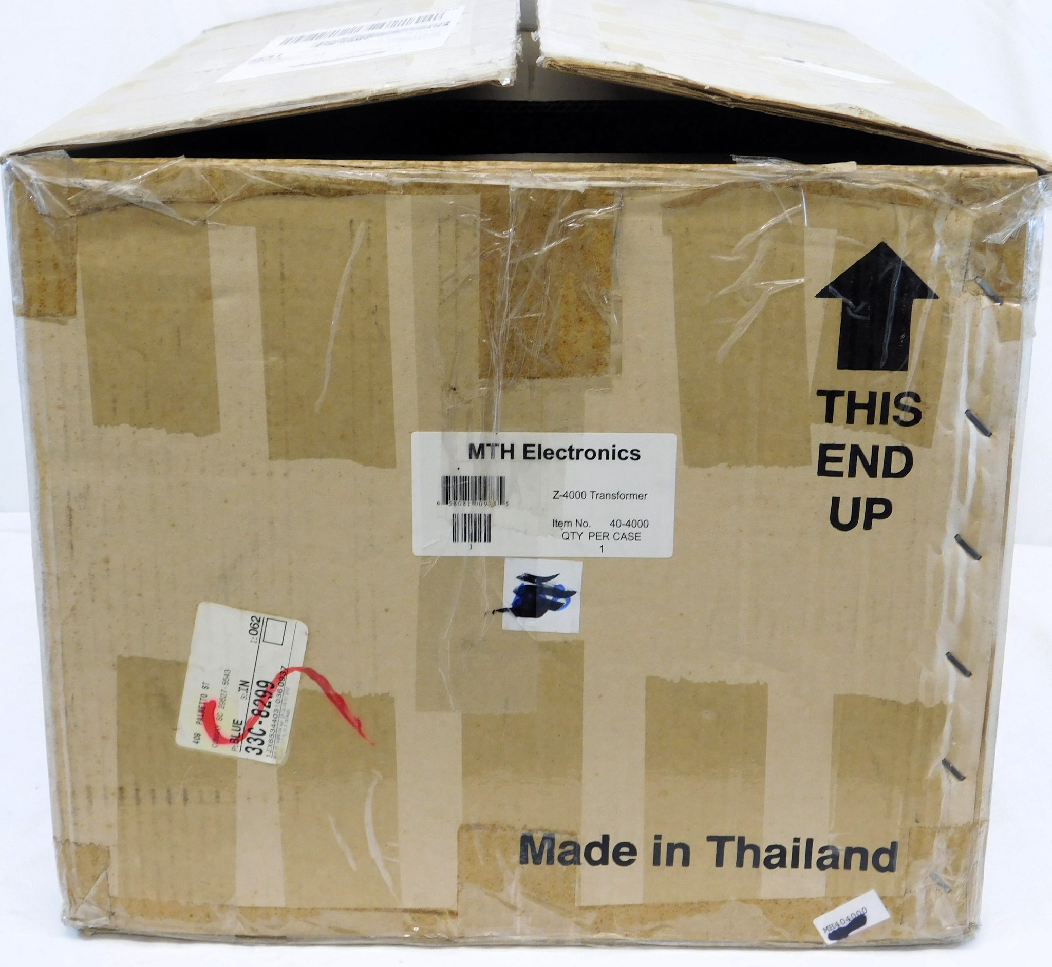 CONDITION: C-8.Has been used, but still looks great. Has a few light scratches on the back, one side, as pictured. They are only visible in bright light. The rest of the transformer looks like new. Tested all functions and works great. Checked out by our MTH Authorized Service tech. Resting voltage .1 on each side. With BOX which shows minor shelfwear as well as a shipper which shows more wear including a slightly lifted corner and some writing. With original instructions.