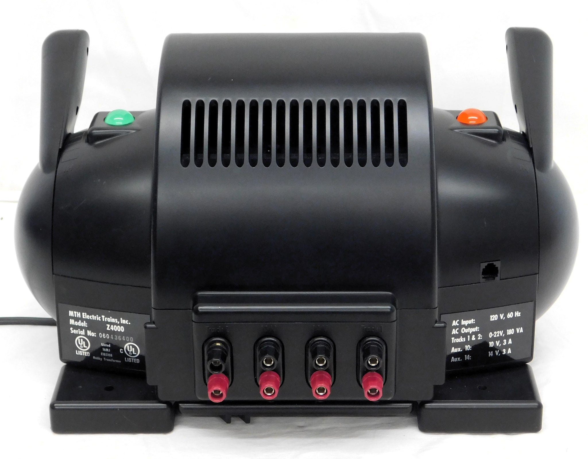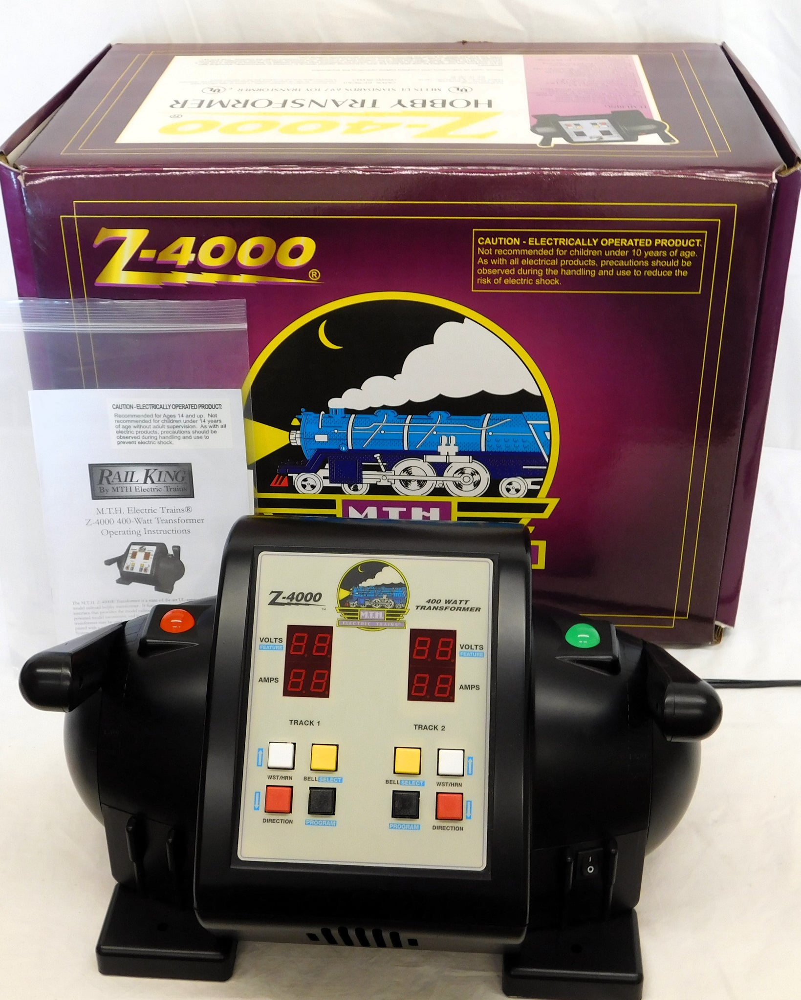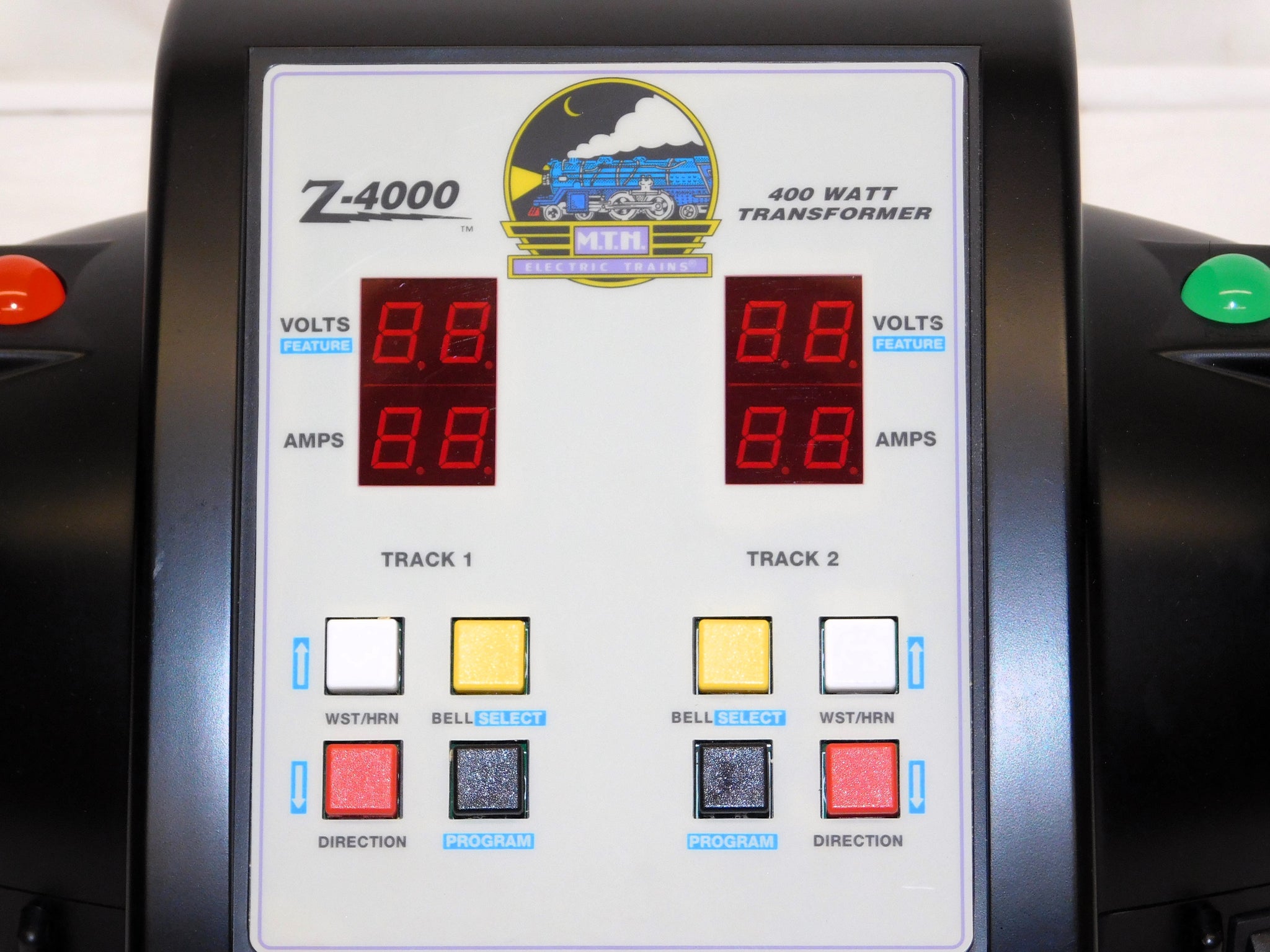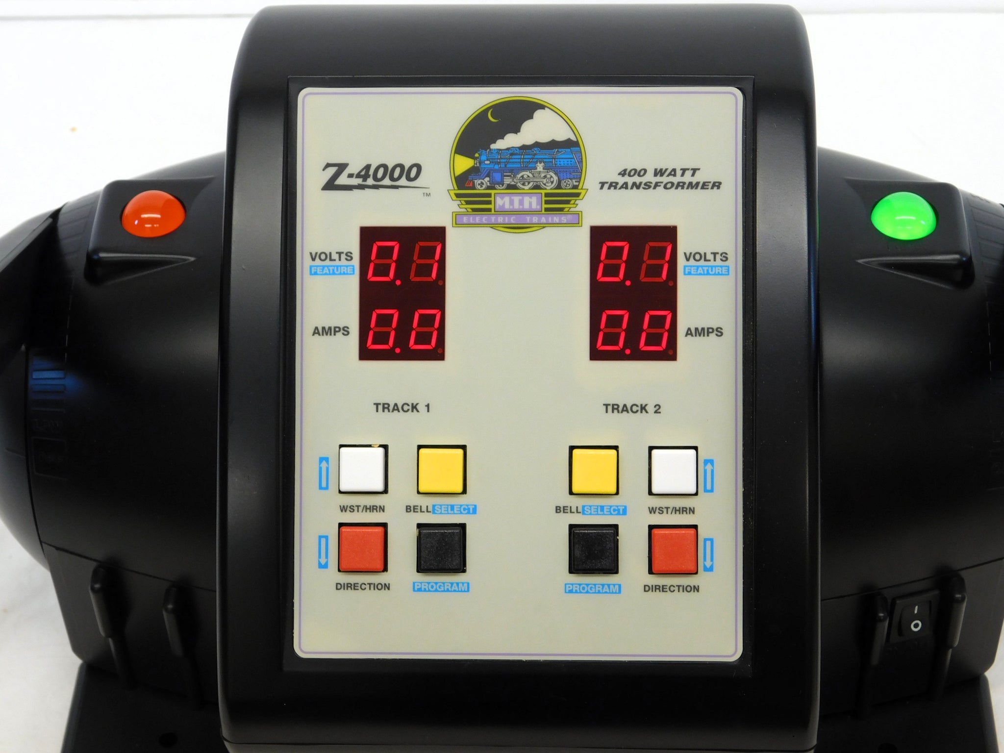 You are looking at a super MTH transformer. In fact, this is the most powerful transformer available which has been rated by UL...400 watts. This one has four different posts for running your layout, sharp LED readouts, buttons for bell and whistle, programming, and more.
