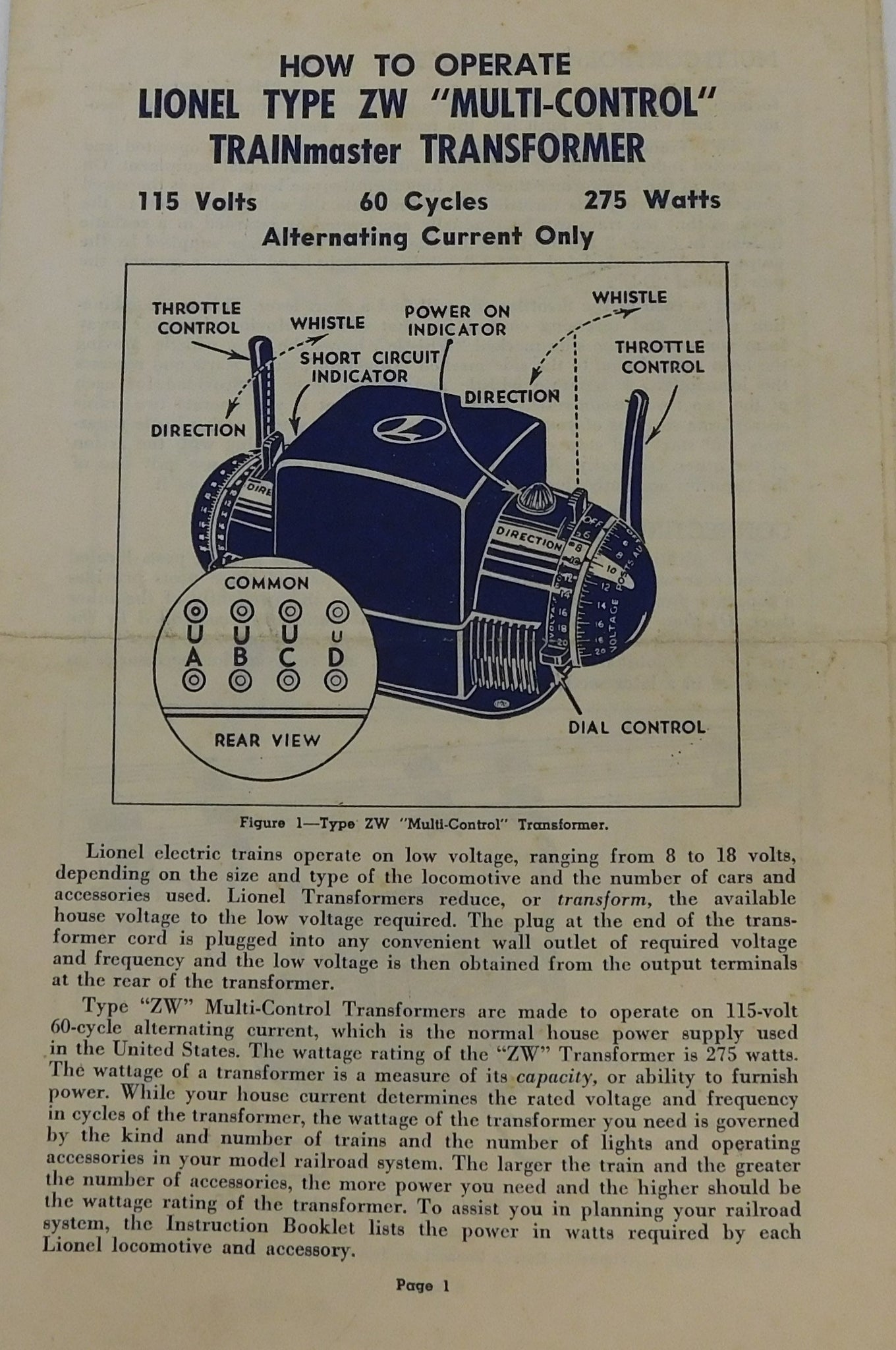 This ZW transformer is the most powerful transformer Lionel made back in the day. This is the iconic transformer you remember from the 1950s and that you saw on the Addams Family. It has remained the style everyone wants and remembers.  It has 250 watts of power and has four variable controls, (two of which have the whistle and direction controllers) so you can run trains and lots more with this one power supply.  Use one or two of the circuits for accessories!
