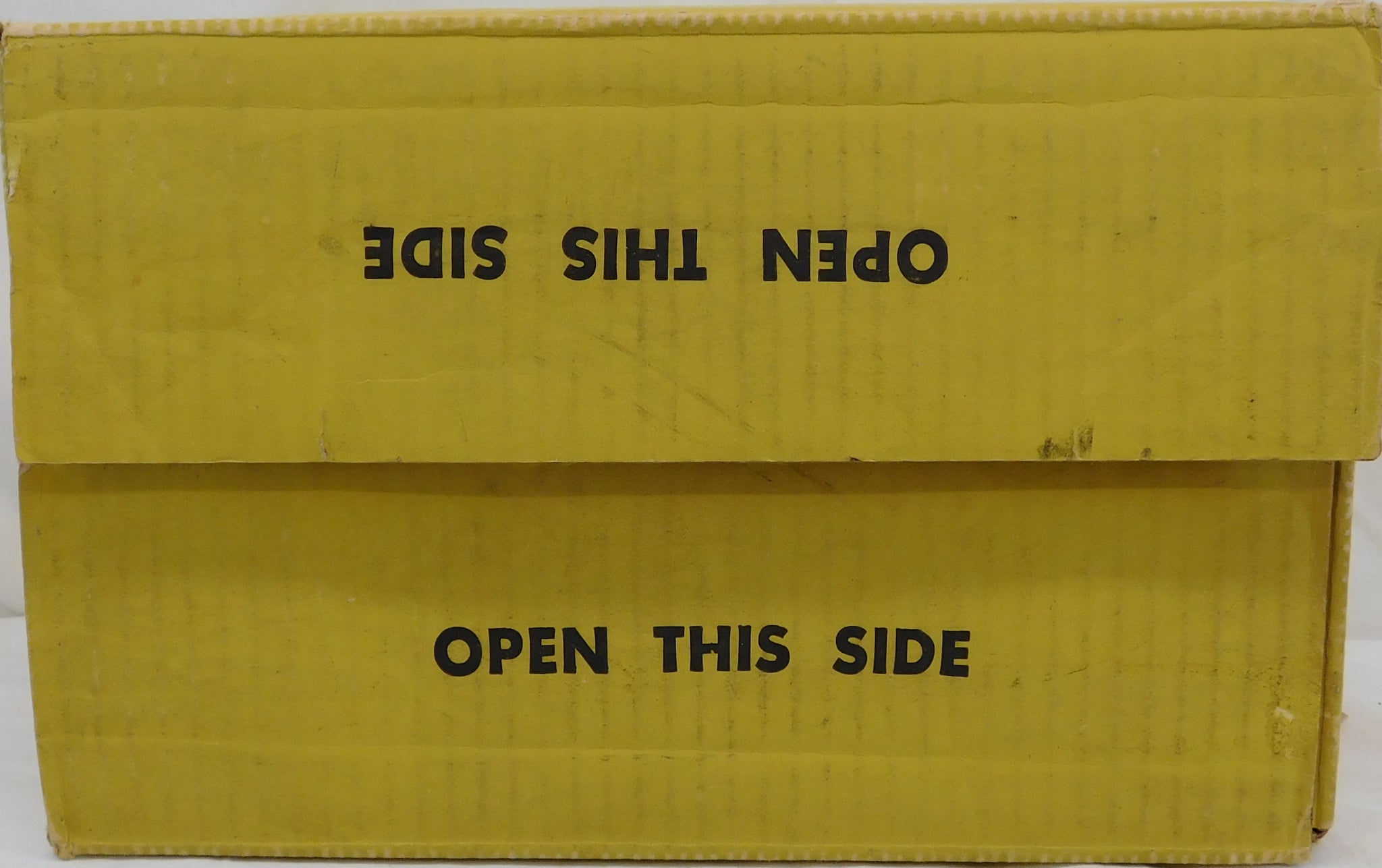 BOX is P-6 showing some paper rubs, white stain and wear. Some discoloration. The top inserts are part of the top flaps and keep everything together well. With the original instructions.