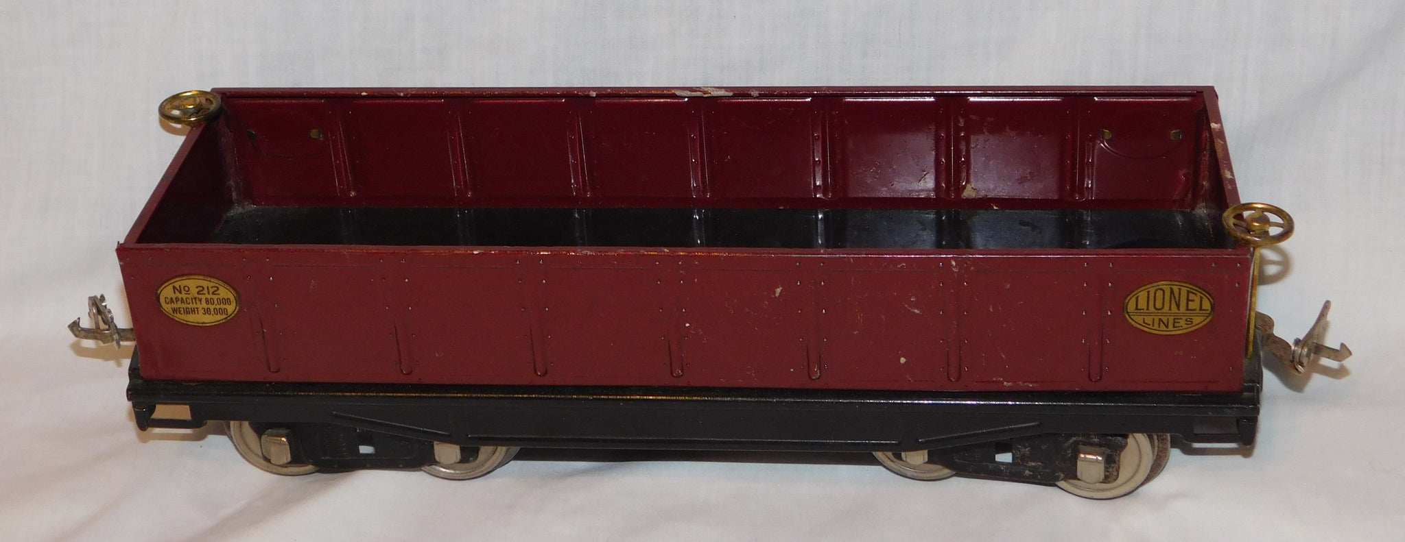 Here is a cleaner version of the Lionel #212 Standard Gauge gondola. Lionel produced this number starting in 1926, but based on the variations, I would place this one in the late 20s to early 1930s.