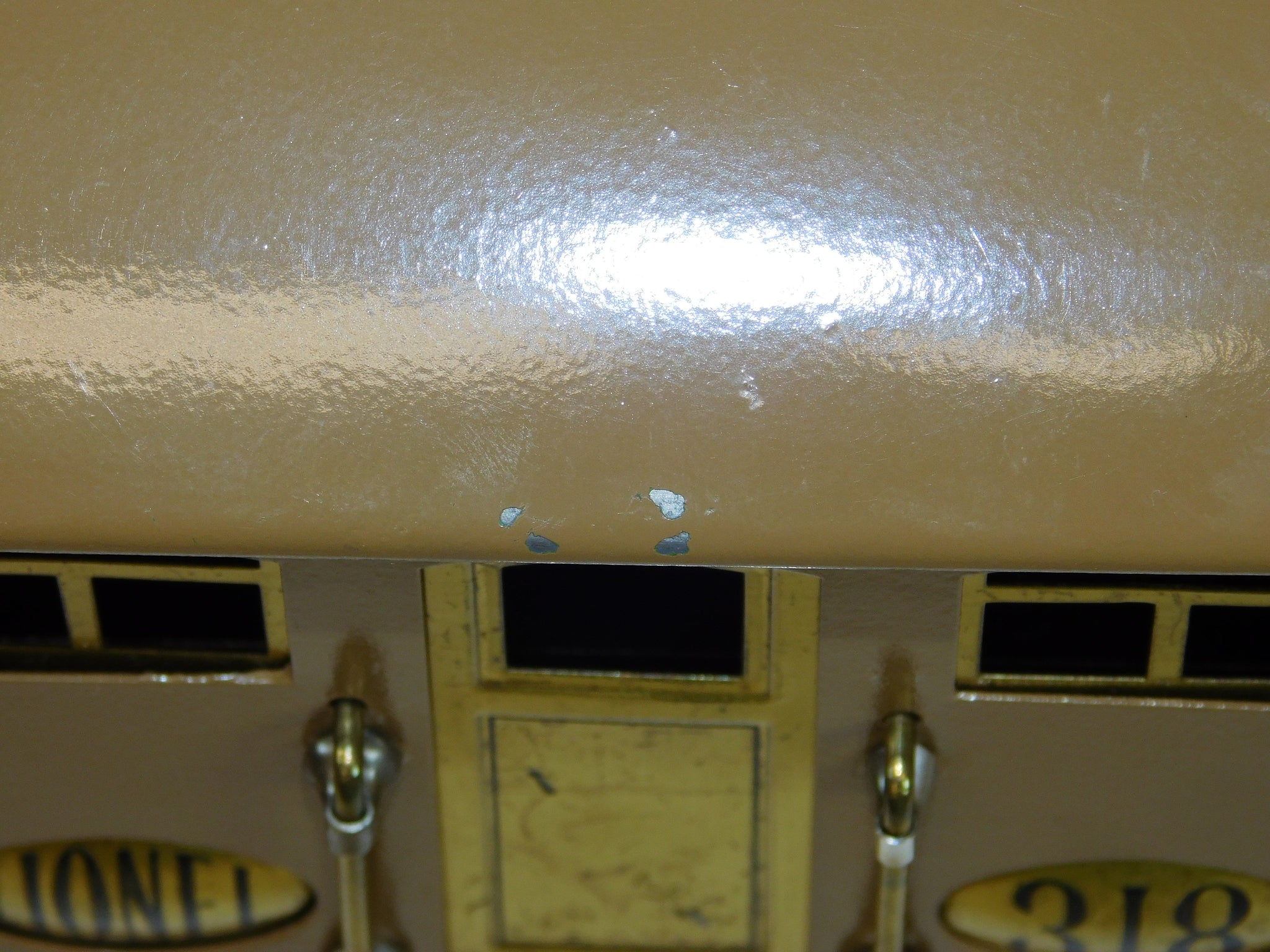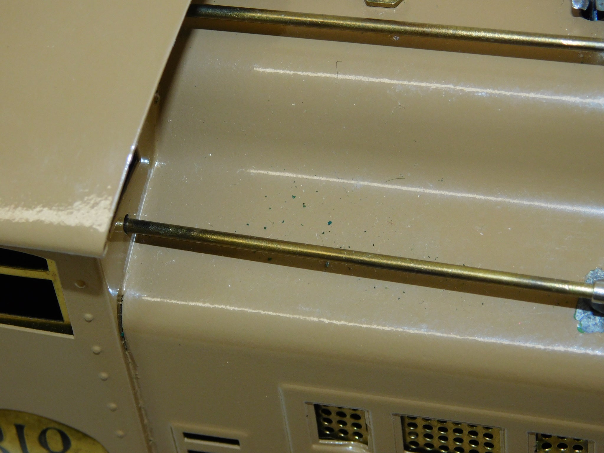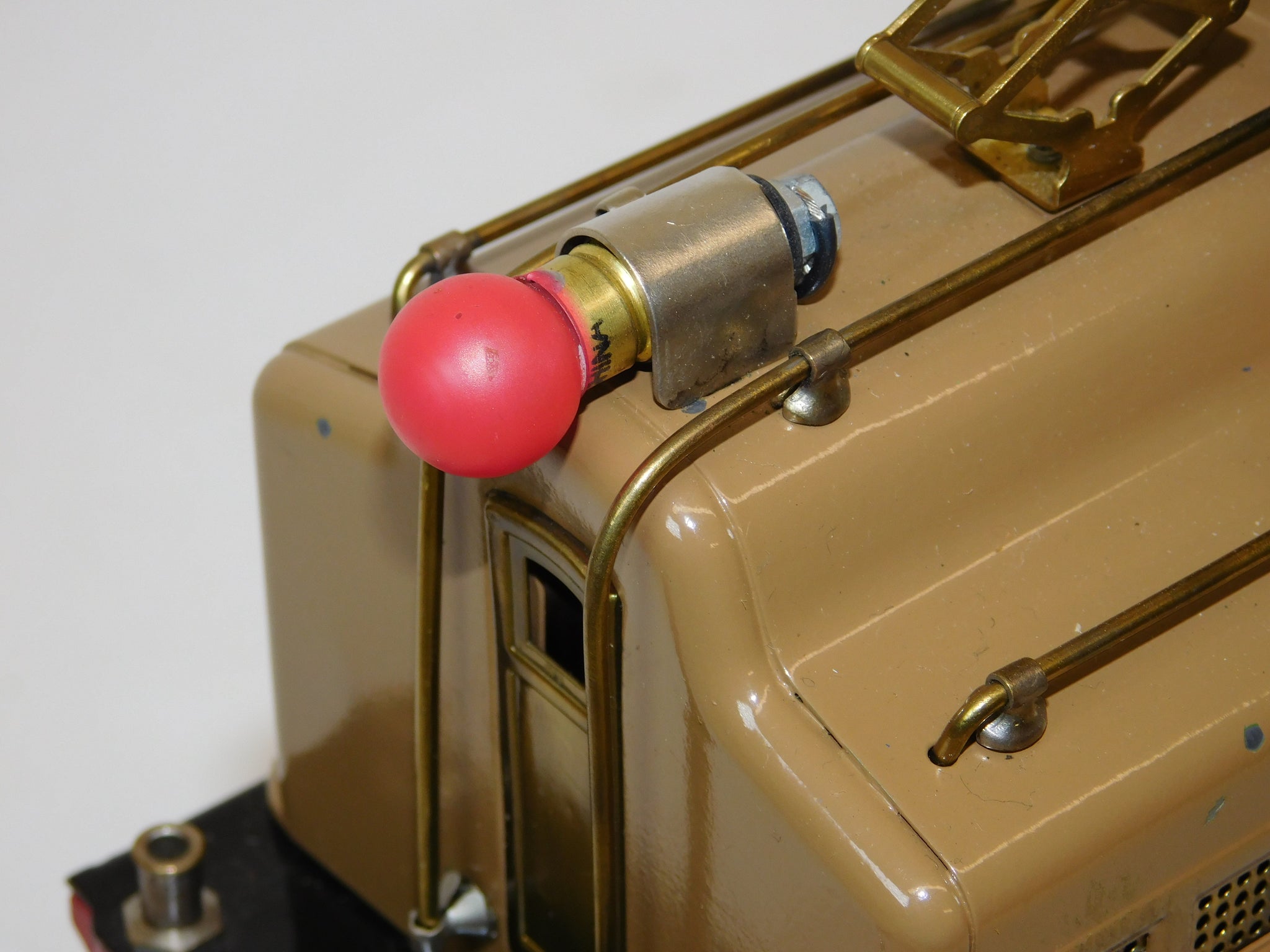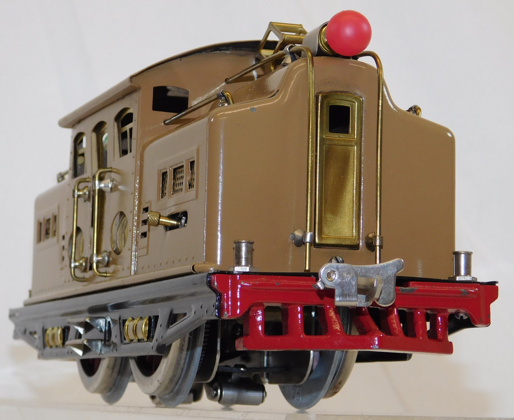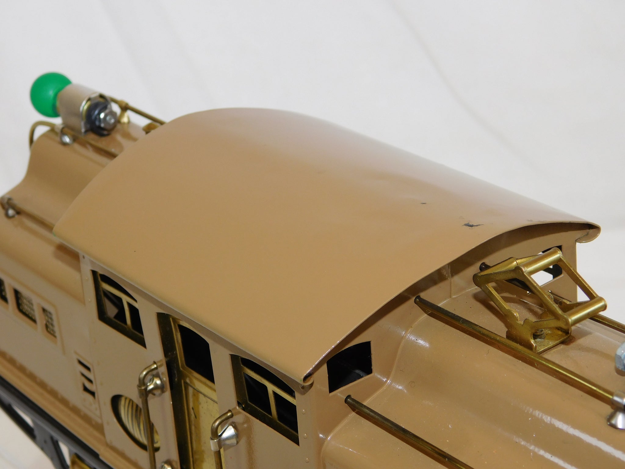 You are looking at a classic electric engine from 1924-32. This beautifully restored lighter brown electric engine is running smoothly, reversing and lights up.