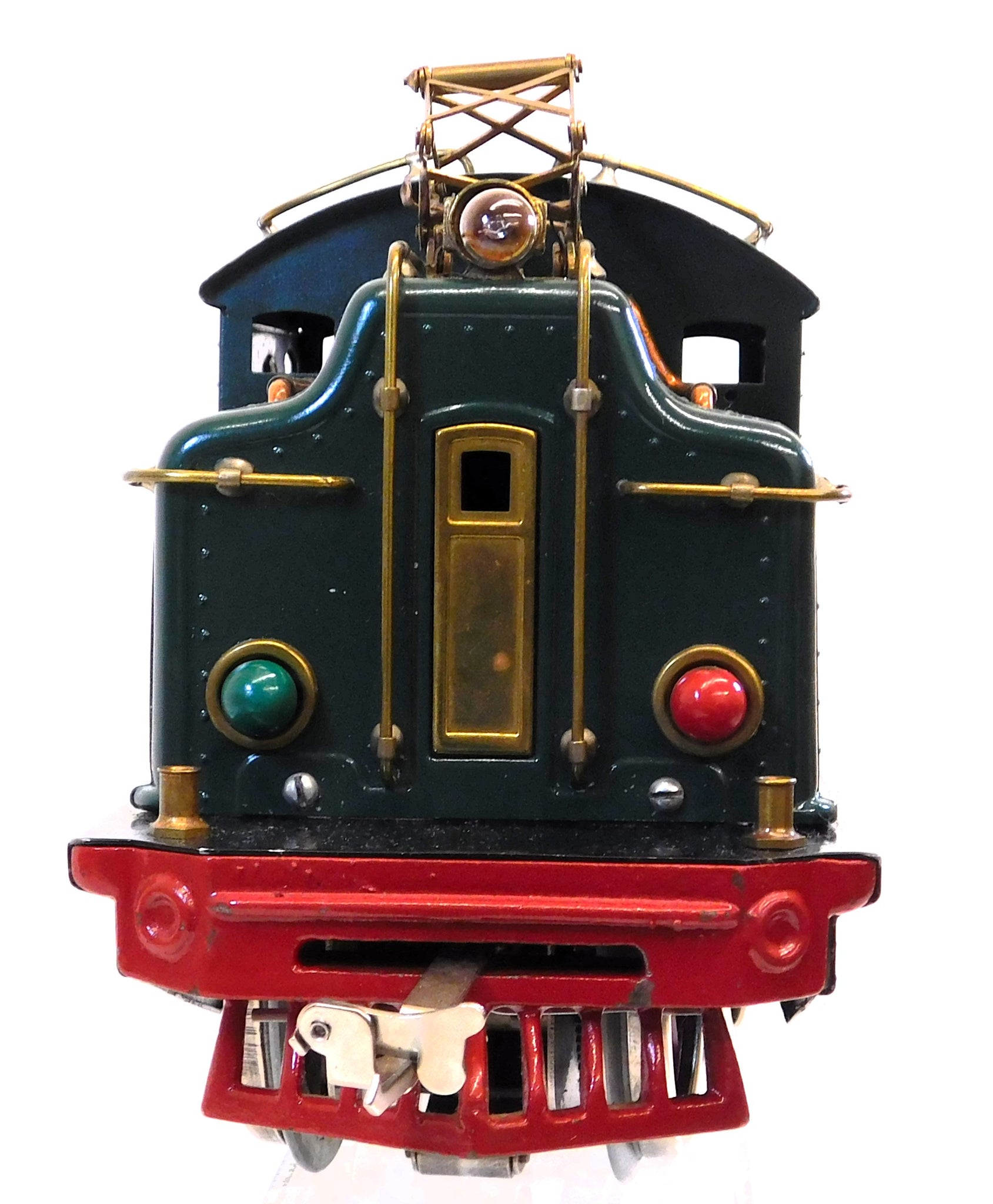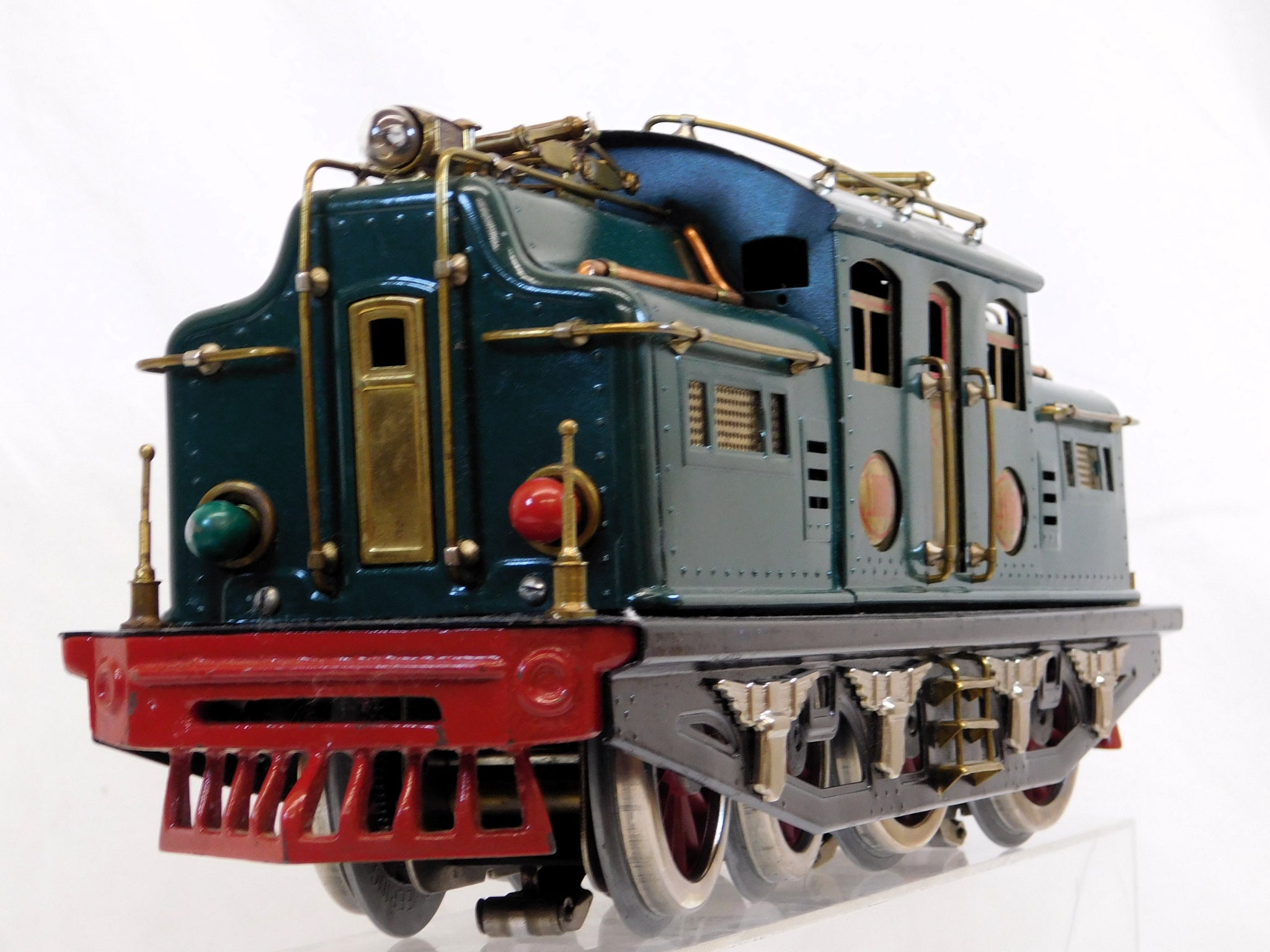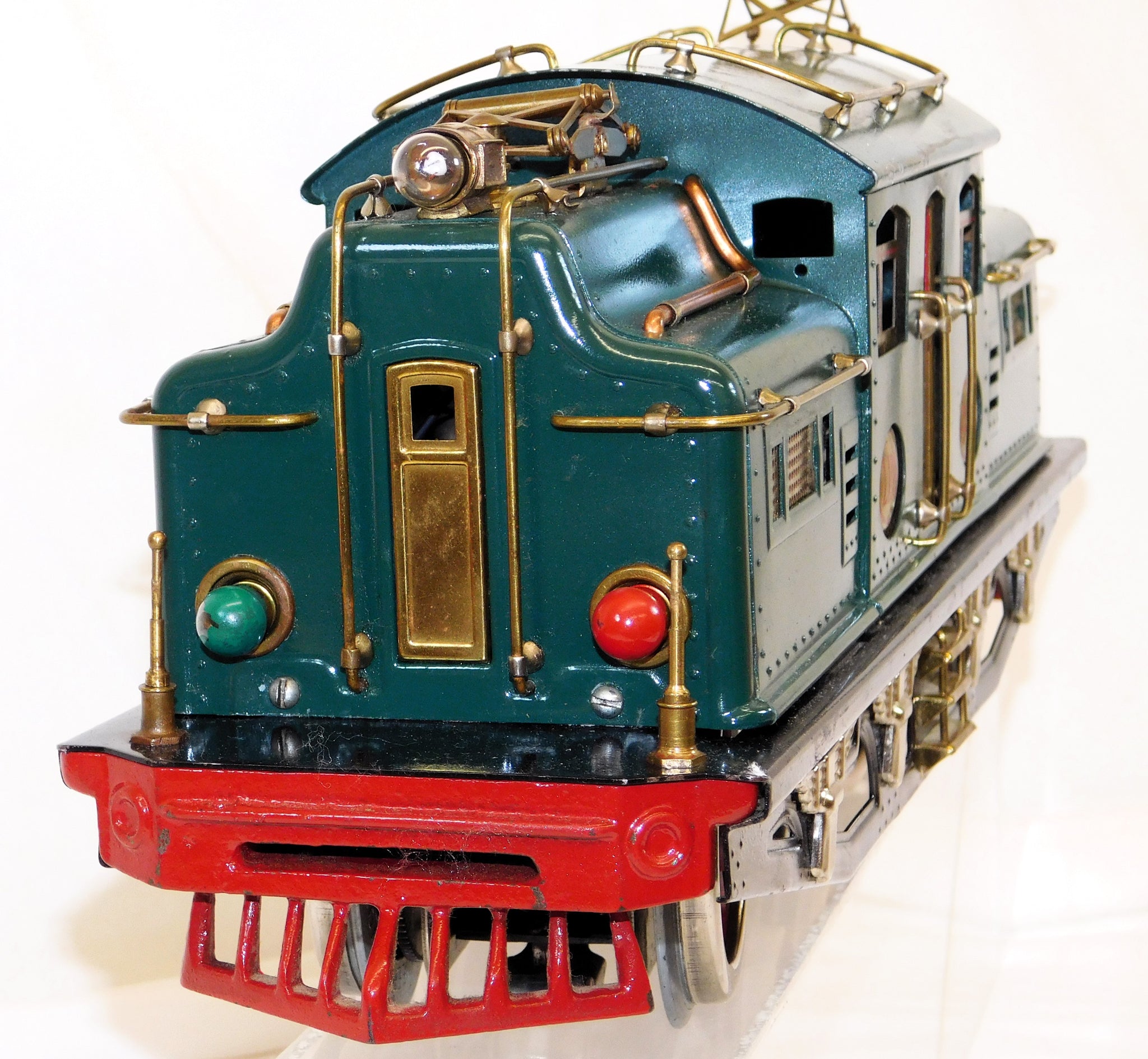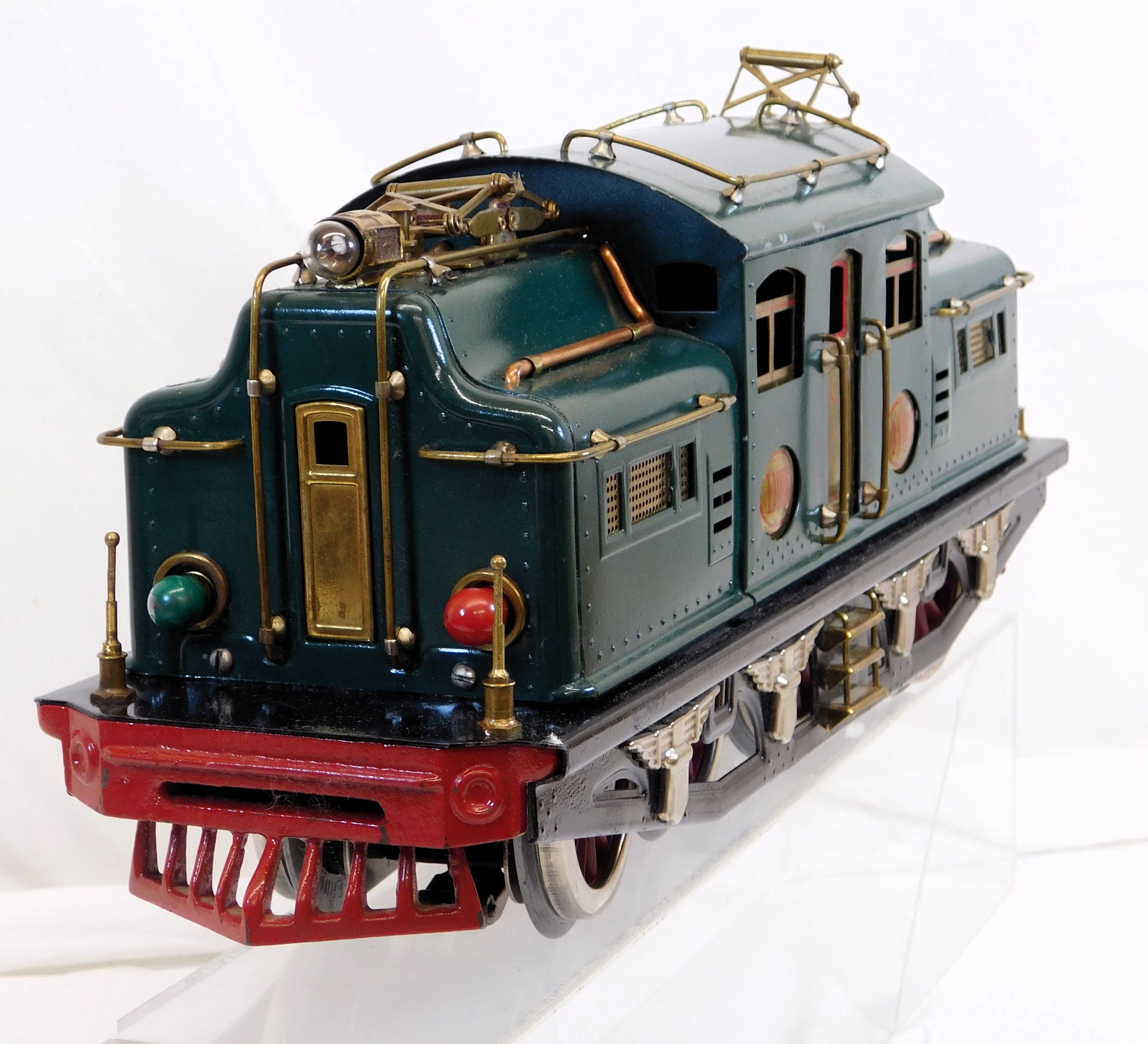 CONDITION: Beautiful restoration.Tested and runs, lights and reverses. Body has been repainted. Brass plates, grills, and roof details such as pantographs all appear original. Brass door, etc do show some oxidation. Base is either new or repainted. Case plots are either repaints or repro. Nickel journals most likely reproduction, but not sure. Really nice paint job with some paint nicks along the roof edge. Original motors. Wheels are modern replacements.