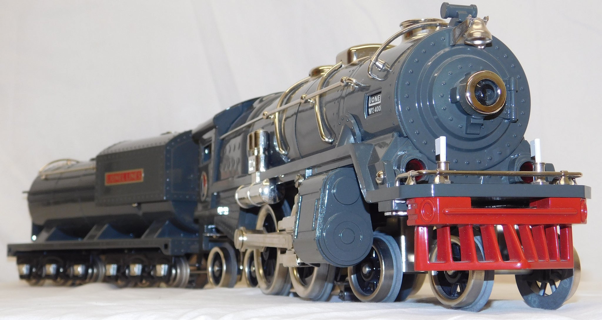 This one is the best of both worlds--the exact look of the classic Lionel 400E 4-4-4 BLUE COMET steam engine but now with the brand new parts and shine of a new item and in a great prewar color, gray.