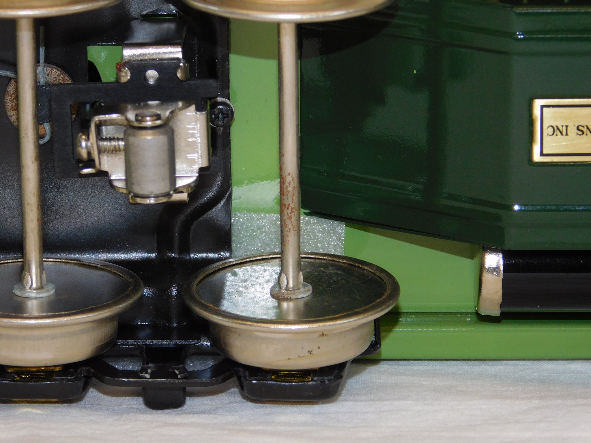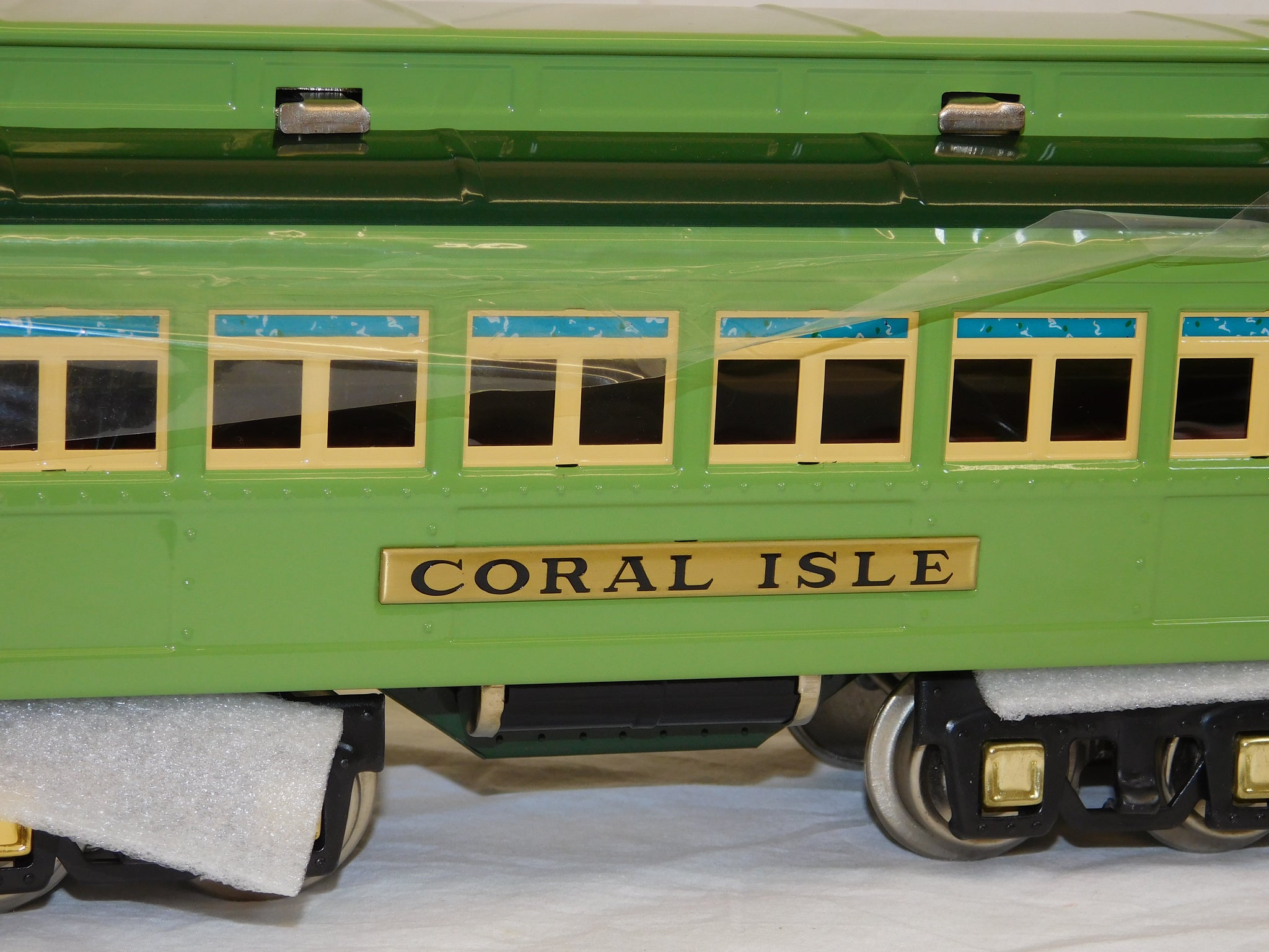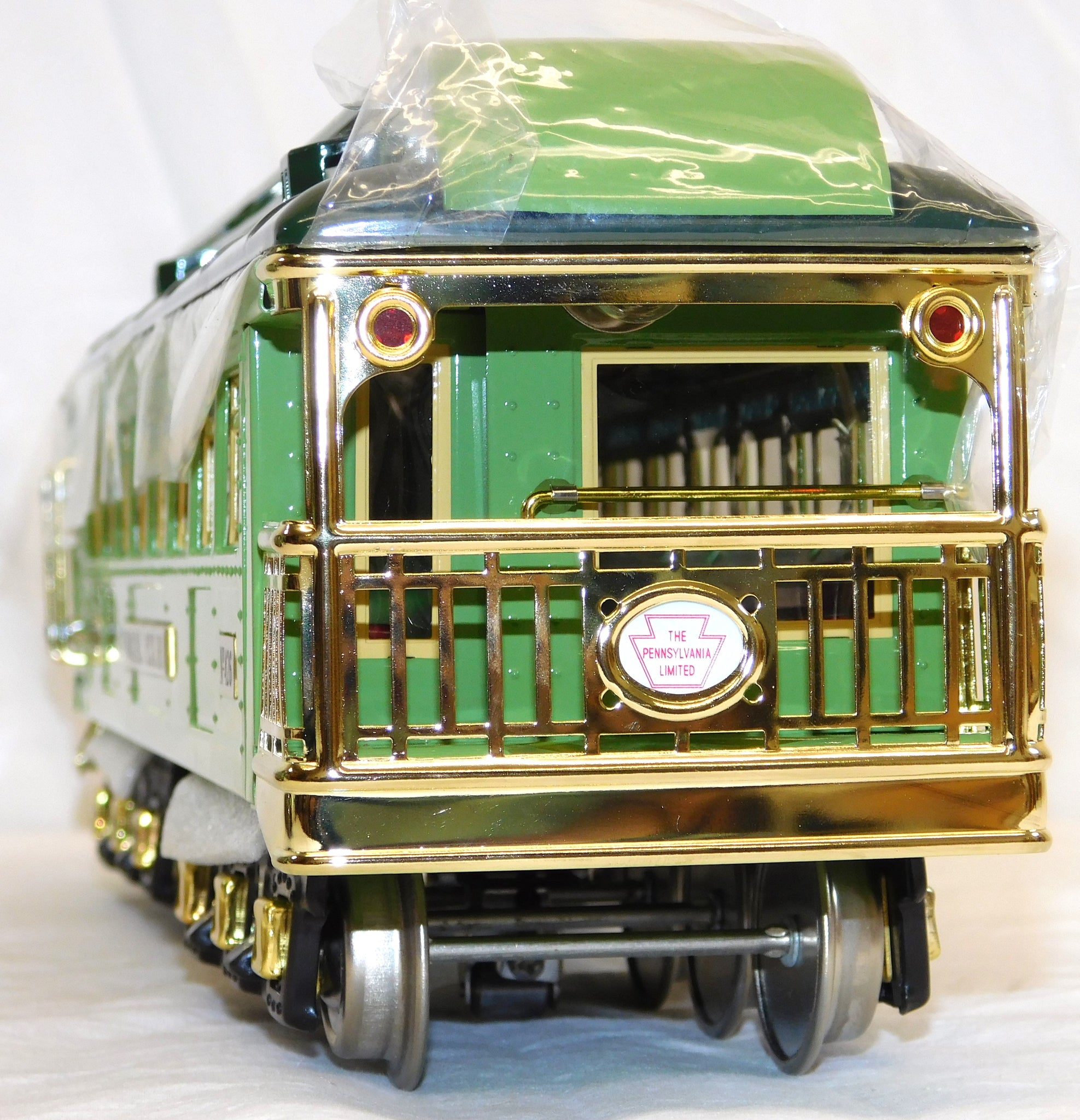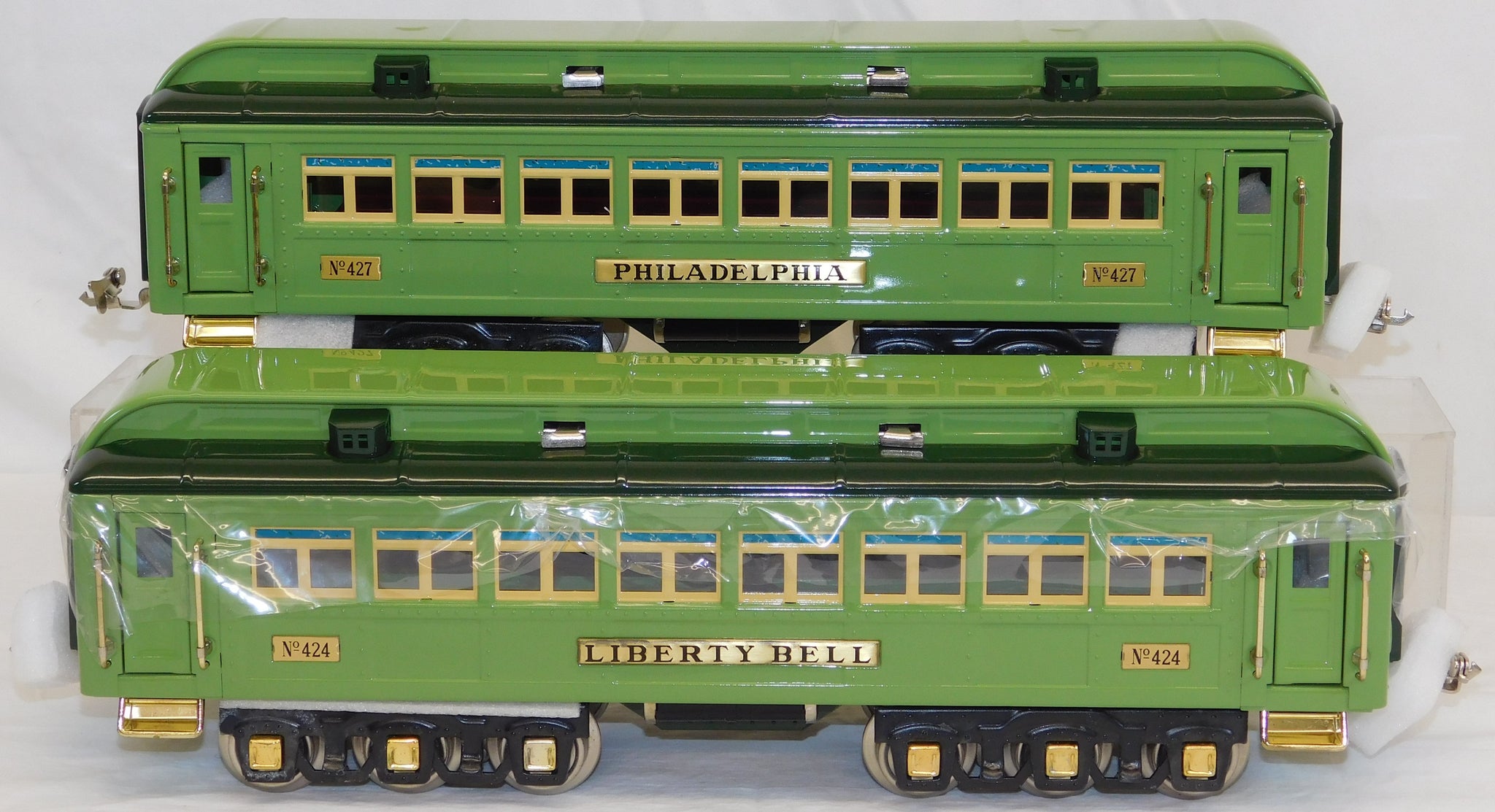 This two-tone green car set is in the Stephen Girard series. It really is the best of both worlds as you have a beauty of a car that you can run without fear of ruining a prewar classic. The original was released in the 1930's as one of the most deluxe cars produced in size using those highly coveted six wheel trucks.