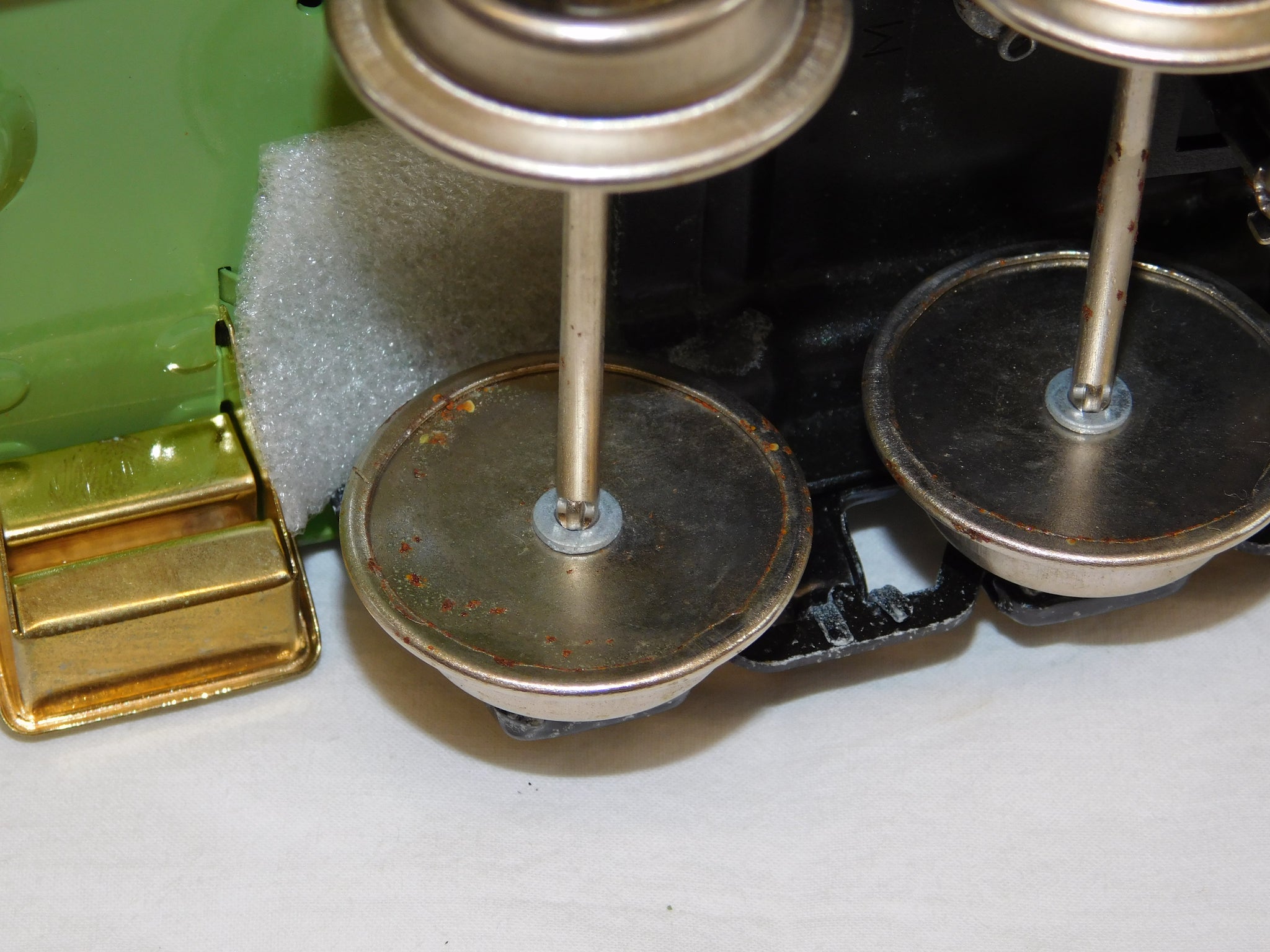 CONDITION: C-7. These look like new, but we like to be very picky, so rating as C-7 due to some rust spots on an axle of observation, rust on underside of the trucks, and some oxidation on the handrails. Paint and plates look great. BOXES are strong P-7 showing minimal shelfwear, some rubs and minor creases. With original shipper which shows some writing, runs and water marks or stain.