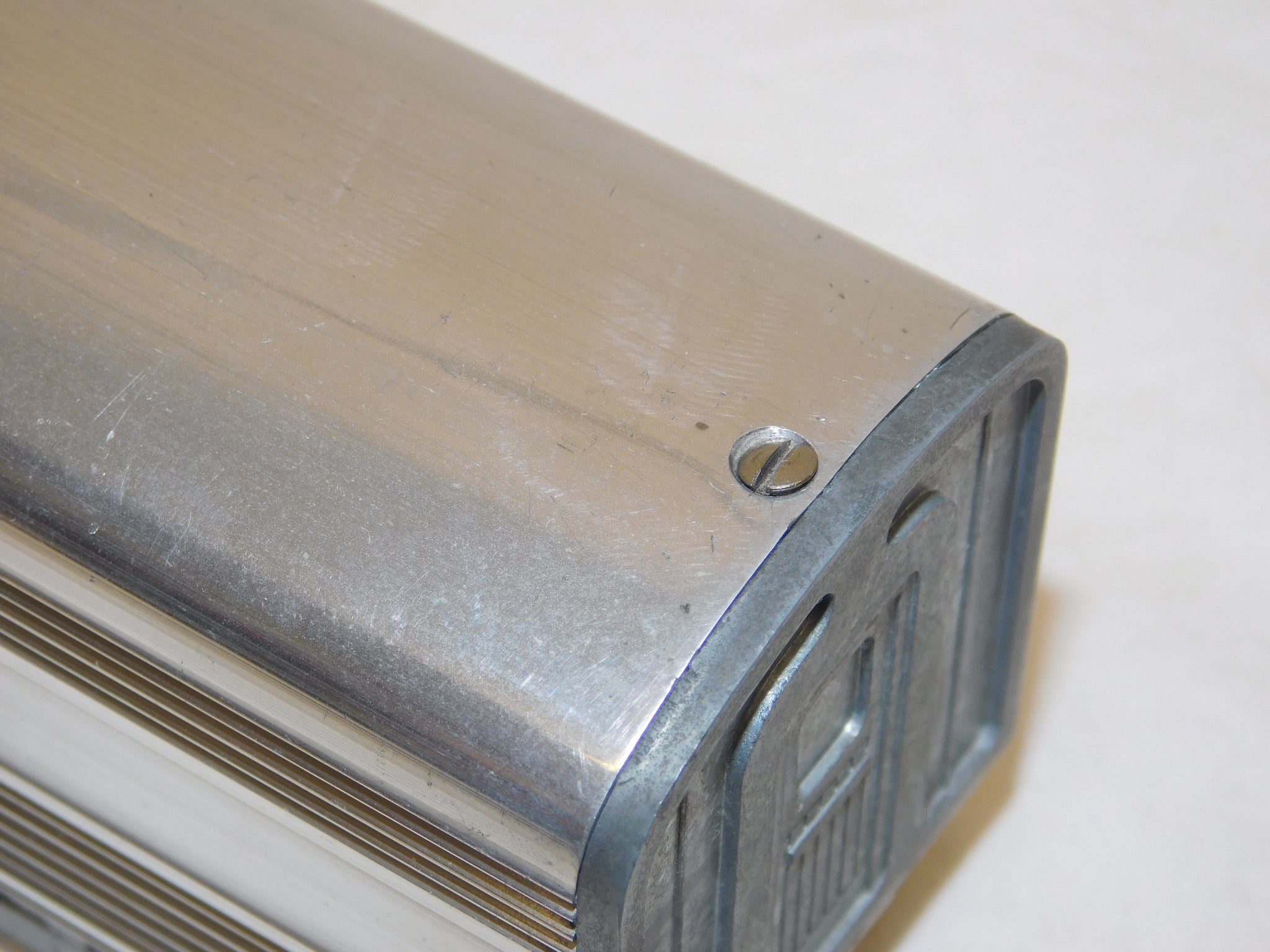 CONDITION: C-6, very good. There are scratches in the metal from years of playwear. The scratches may buff out if that is your thing--but we like to leave those decisions to the next owner. Two of the roofs are slick and shiny; one shows a little more wear. The observation roof rear shows significant scratches. There are some surface rust spots on the underside of two of the cars. Has all nameplates, though some have slight indentions at a rivet. Has all trucks couplers. The rear dome of the observation car is missing silhouettes. Please look at all of the pictures.